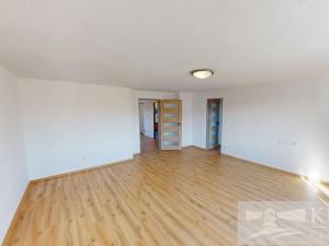 Hlavní obytný prostor: Srdcem bytu je rozlehlá kuchyně, ze které se dostanete do všech ostatních místností.