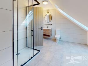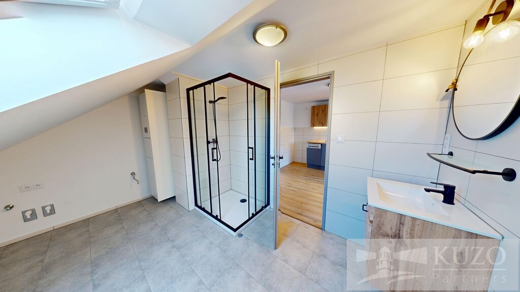 Hledáte nadstandardní bydlení s unikátní atmosférou? Nabízíme k pronájmu jedinečný, nově postavený byt 3+1 o celkové ploše 118,8 m² v atraktivní lokalitě v Příbrami, na ulici Fibichova. Byt, se samostatným vchodem, tvoří celé 1. patro rodinného domu a pyšní se moderním podkrovním vzhledem s přiznanými trámy.