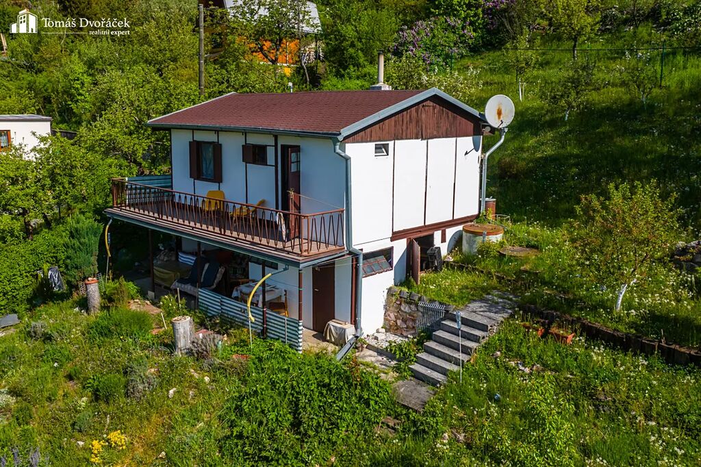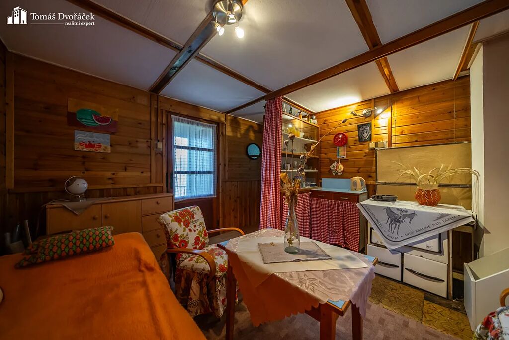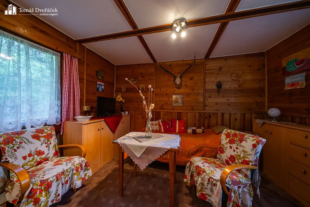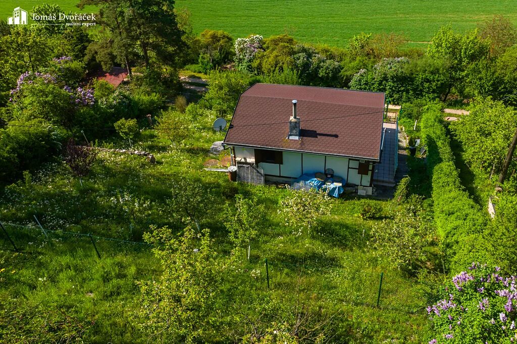Exkluzivně Vám nabízíme prodej chaty 1+1 o podlahové ploše 50 m2 v Březině u Tišnova. Celková plocha pozemku včetně zastavěné plochy chaty činí 914 m2. Do chaty je dovedena elektřina a přípojka vody, dále je na pozemku umístěn septik. V obytné části chaty se nachází dva pokoje, toaleta a koupelna se sprchovým koutem. Ve spodní části chaty je letní kuchyně a kryté posezení. Pozemek je svažitý a nabízí nádherné výhledy směr Heroltice. Chata je podsklepena. Doporučujeme prohlídku nemovitosti.