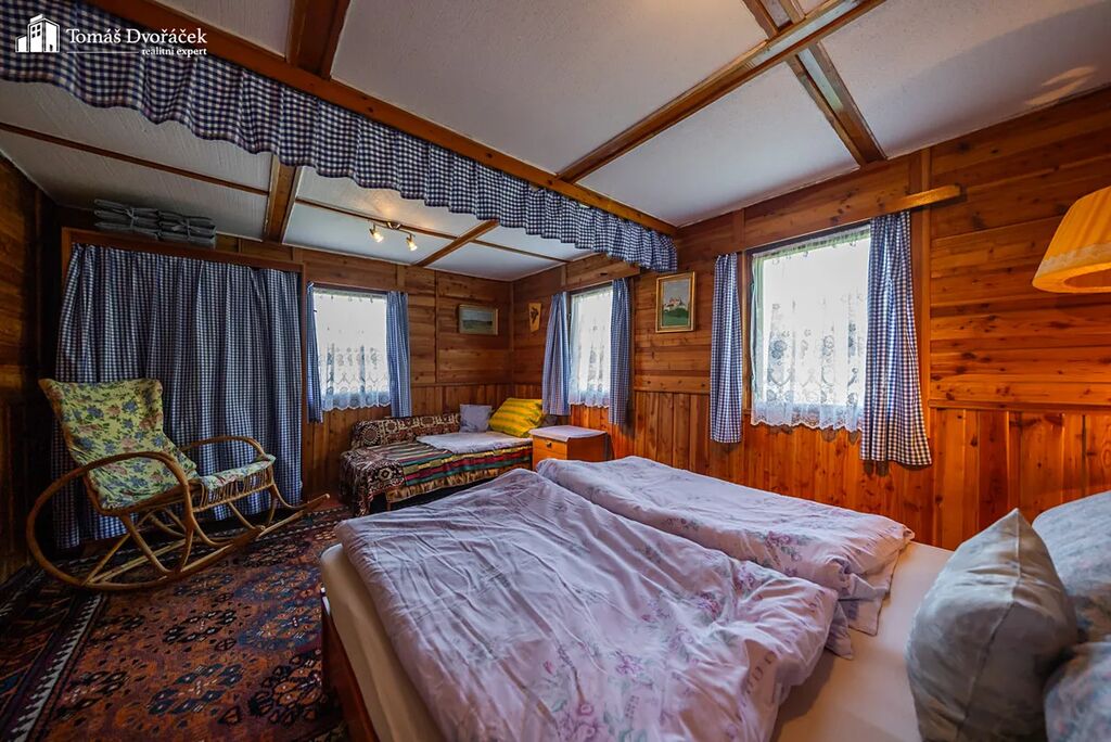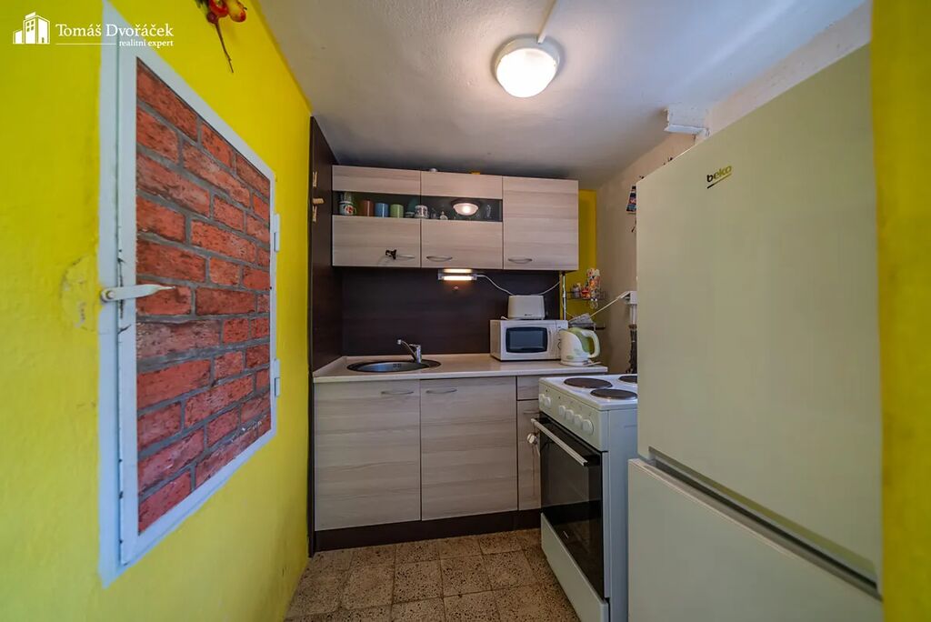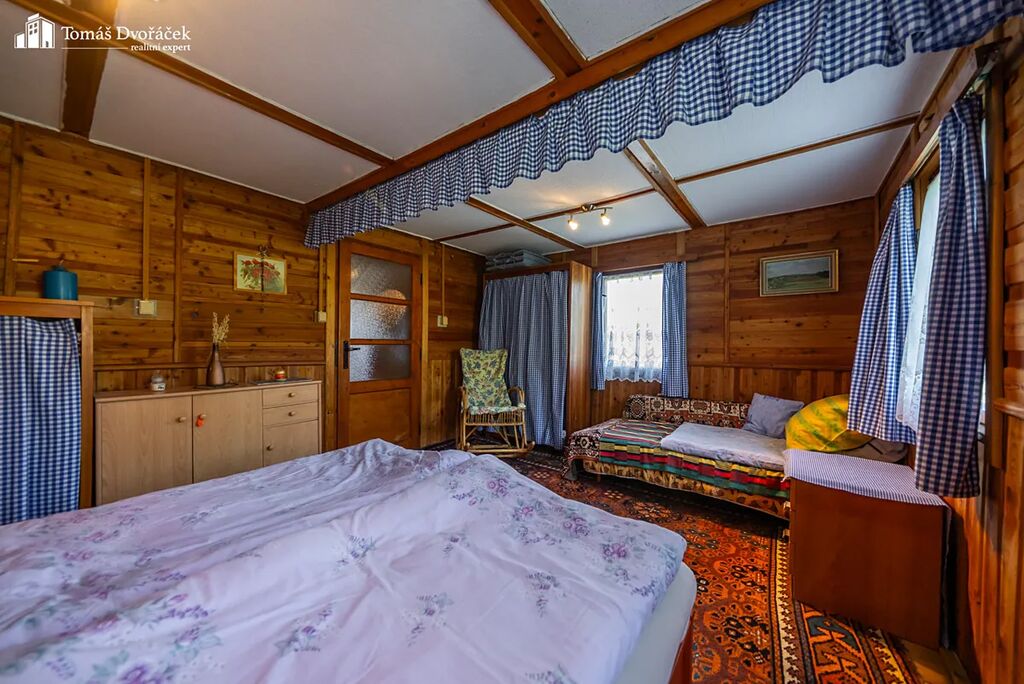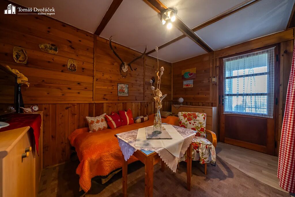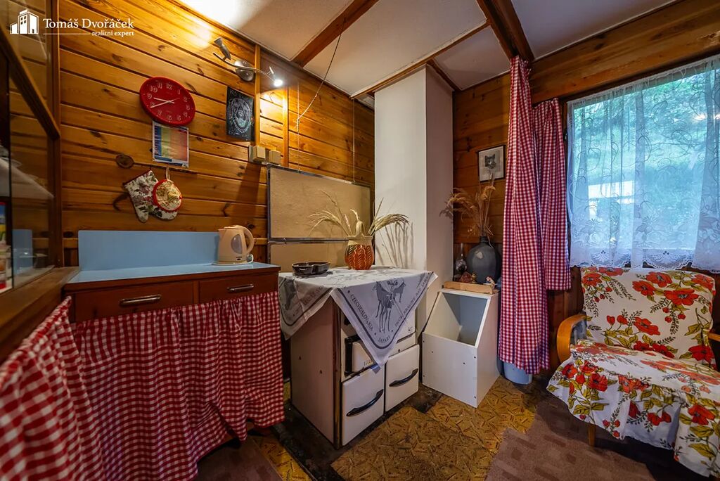 Exkluzivně Vám nabízíme prodej chaty 1+1 o podlahové ploše 50 m2 v Březině u Tišnova. Celková plocha pozemku včetně zastavěné plochy chaty činí 914 m2. Do chaty je dovedena elektřina a přípojka vody, dále je na pozemku umístěn septik. V obytné části chaty se nachází dva pokoje, toaleta a koupelna se sprchovým koutem. Ve spodní části chaty je letní kuchyně a kryté posezení. Pozemek je svažitý a nabízí nádherné výhledy směr Heroltice. Chata je podsklepena. Doporučujeme prohlídku nemovitosti.