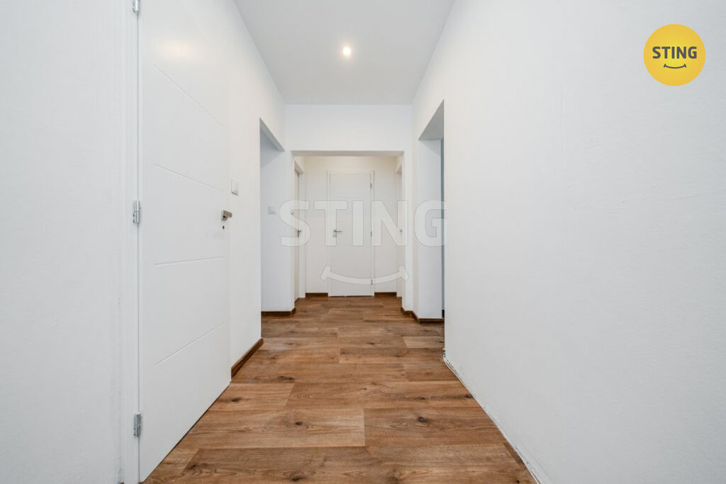 Dispozice bytu nabízí pohodlné bydlení pro rodinu i pár – tři samostatné pokoje, plně vybavená kuchyně a praktické úložné prostory.