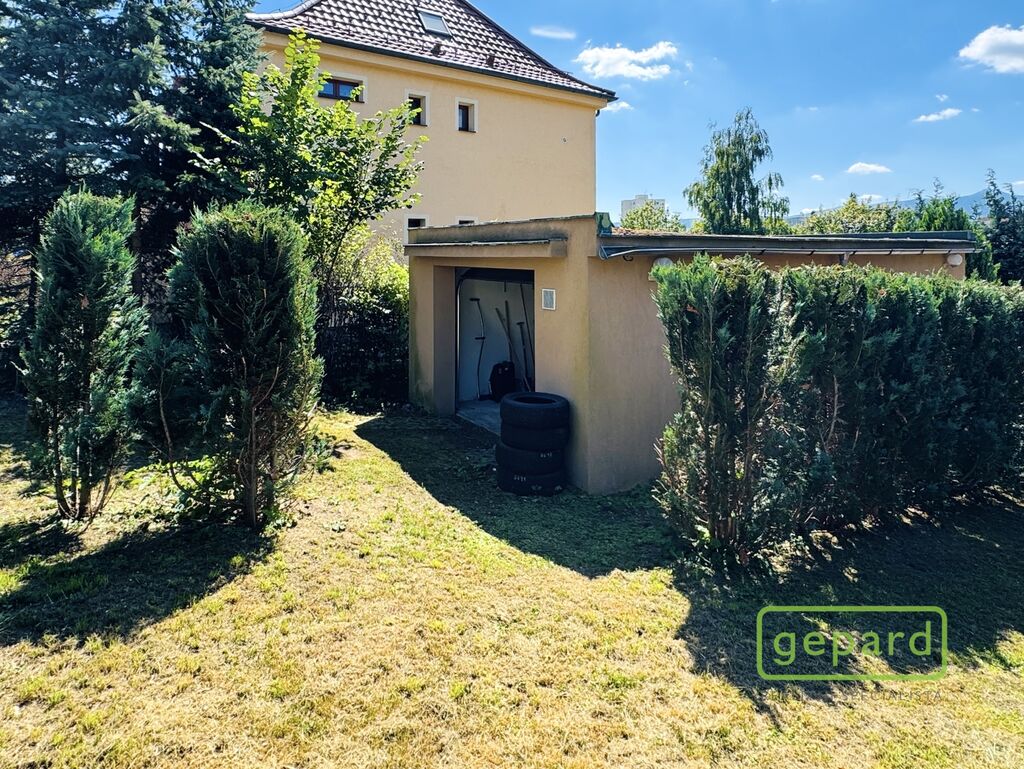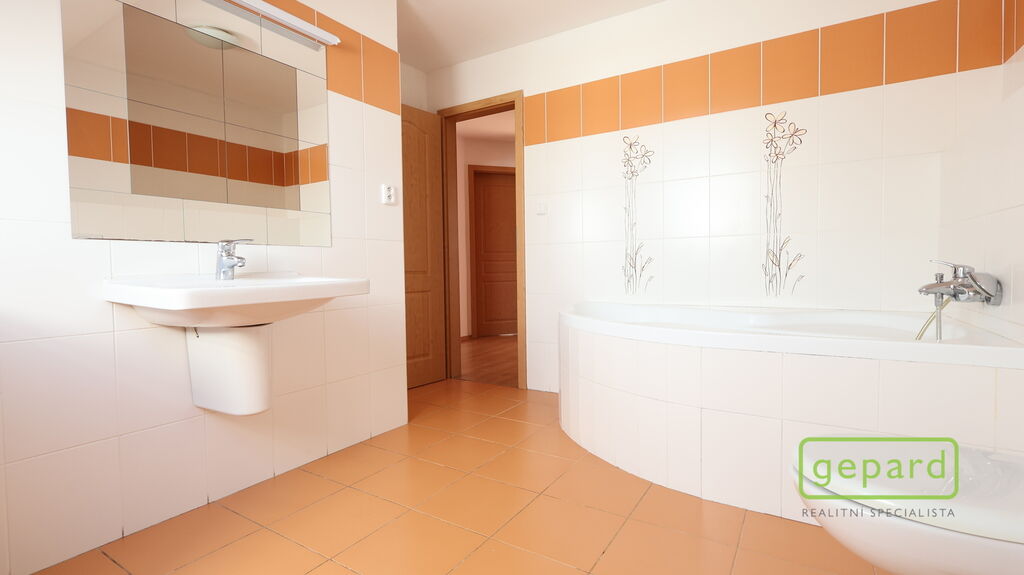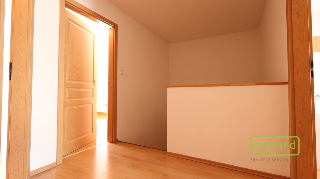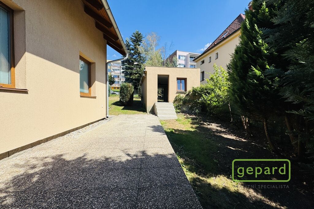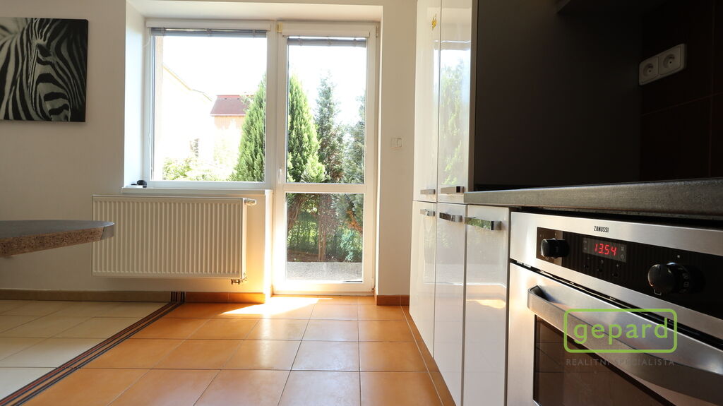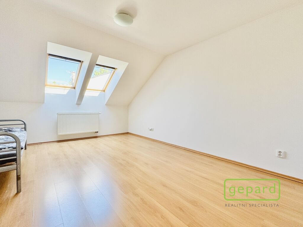 Dům je řadový-krajní, takže k němu z boku náleží i prostorná zahrada s kopanou studnou a zděnou garáží, kde je i prostor pro uskladnění věcí. Hlavní vchod je z ulice, kde máte parkovací místo ještě pro dva vozy. Ze zahrady vede zadní vchod přímo do obývacího pokoje s kuchyňskou linkou a spižírnou, dále se nachází místnost vhodná např. jako ložnice, velká šatna nebo pracovna. Toto spodní patro má i vlastní WC s umyvadlem a sprchovým koutem a vstupní chodbu u hl.vchodu do domu ve které se skrývá i kondenzační plynový kotel. Do patra vede dřevěné schodiště a nahoře jsou 3 velké pokoje a koupelna s WC a rohovou vanou. Z prostředního pokoje je výstup na půdu, která poskytuje další místo na uskladnění.