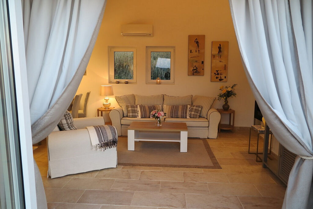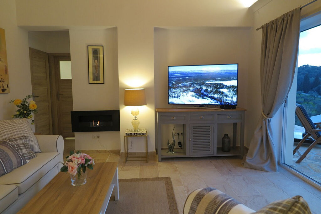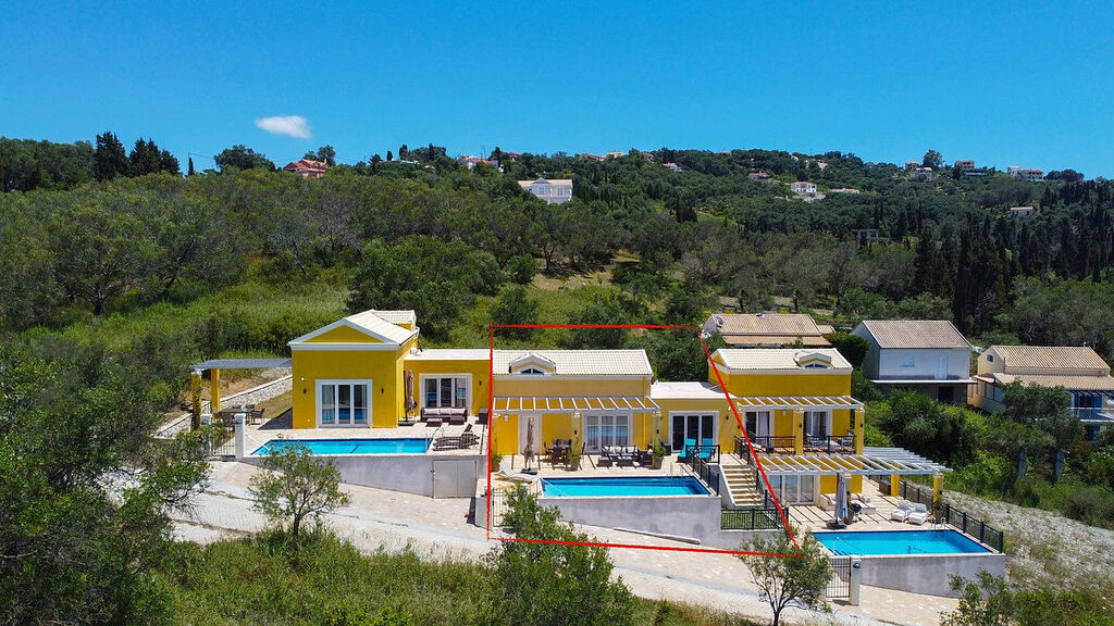 Tento designový dům je součástí ansámblu třech perfektně umístěných rodinných domů s výhledem na západ slunce. Jedná se o úžasnou novostavbu z roku 2018, s fantastickým výhledem na Jónské moře.