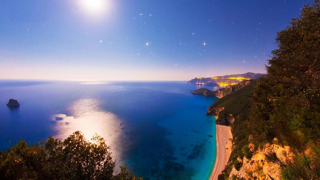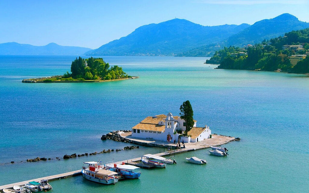 Jen málo míst, které vám poskytne tak nádherný výhled na horizont oblohy, kde se z vás stává každý večer nadšený divák představení nejlepšího režiséra ve světě. Každý den pro vás hraje nová premiéra s nekonečnou fantazií a mistrovstvím. V hlavní roli je paní Příroda. Ohromující vizuální nádhera - Paleokastritsy a zubaté skály Agios Georgios, které běhen jedné hodiny mění celou barevnou paletu po čas západu slunce na ostrovech. Je tu vše, co by člověk mohl chtít pro klidnou a tichou existence. Kolem se rozprostírají se cypřišové lesy se svou svěží vůni a klikatými malebnými silnicemi. Život zde postupuje bez spěchu a je tu dokonalý úkryt před chaotickým světem.