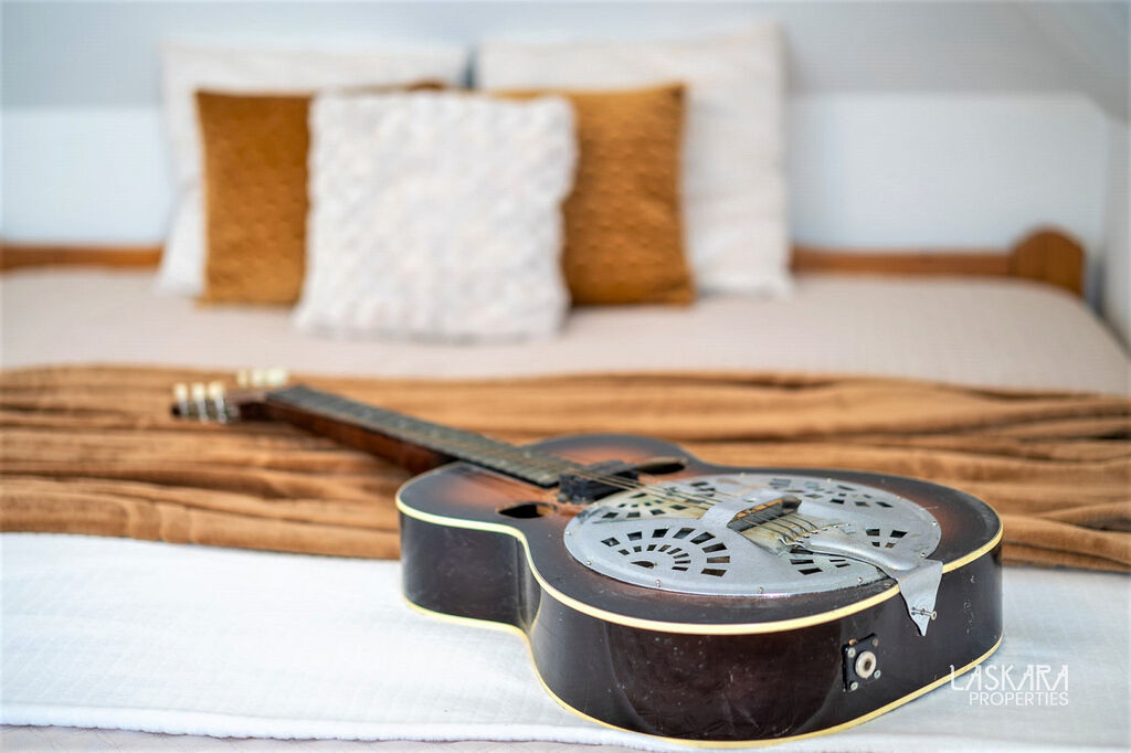 Rustikální styl obývacího pokoje poskytuje teplo a pohodlí skutečného domova, je světlý a prostorný s přímým vstupem na rozlehlou terasu a zahradu.