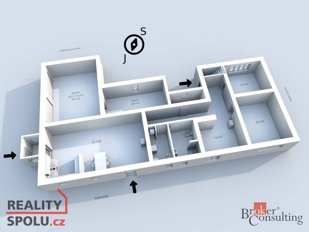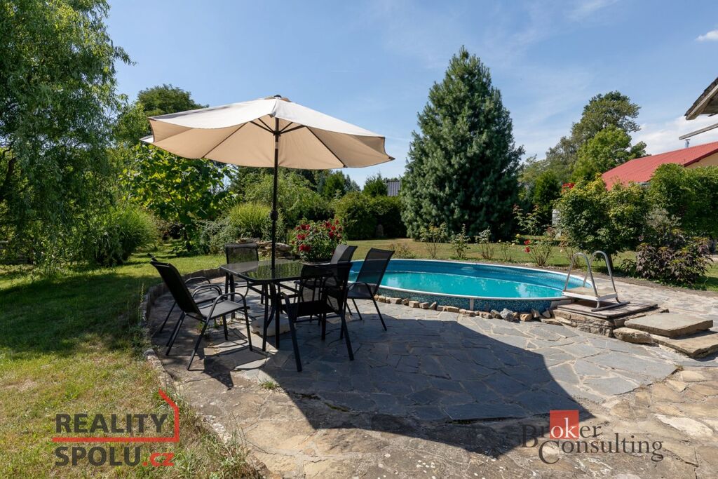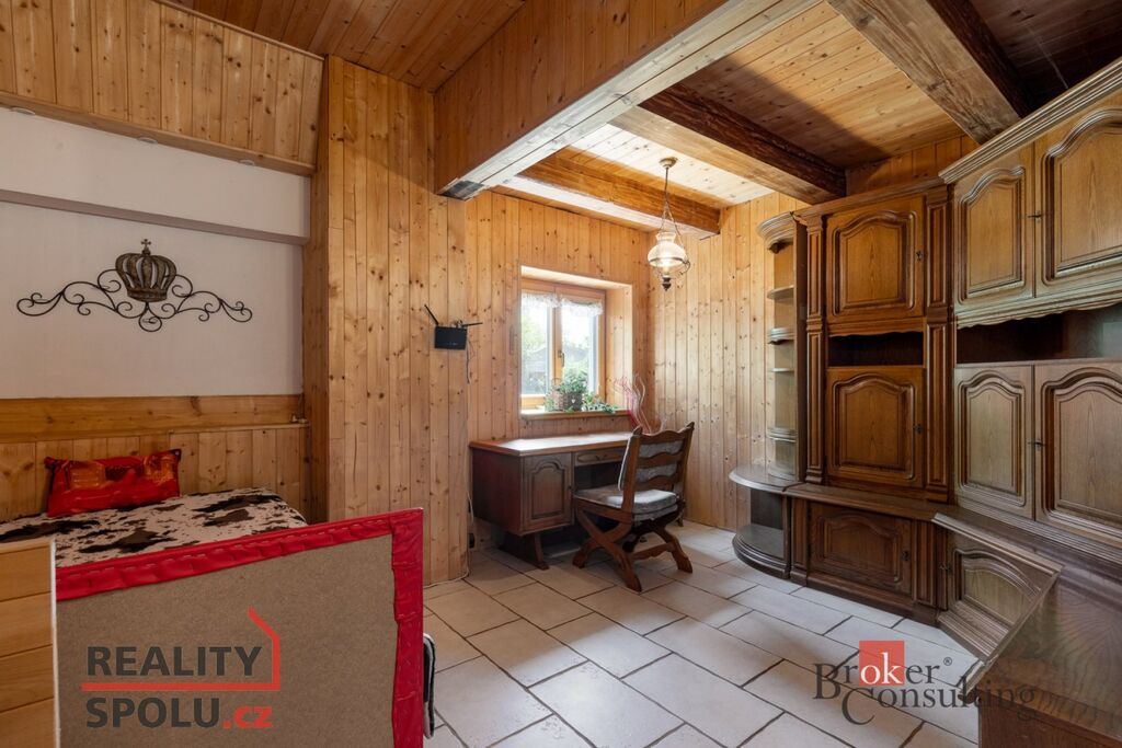 Pokud nebudete zrovna odpočívat na zahradě u kolektory vyhřívaného bazénu či hrát na schovku s dětmi mezi stromy, nabízí se ještě zahradní domek (rovněž s krbem) pro posezení s přáteli či rodinou, ale také třeba pro vaši dílnu například. Za předpokladu, že nevyužijete již tak poměrně velkou dílnu za garáží, která je součástí stavení. Do garáže se vejdou minimálně 2 velká auta a před garáž aut postavíte klidně dalších 6. A pokud by prostoru jako takového bylo stále málo, půdní prostory nabízí další možnosti. Samotné místnosti v domě jsou nadstandardně veliké.