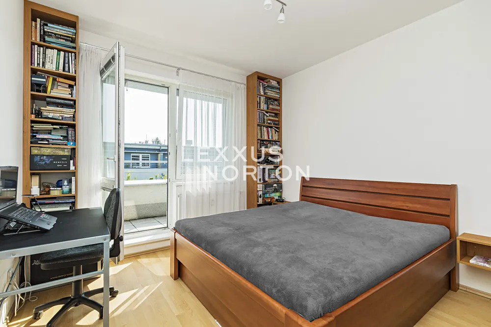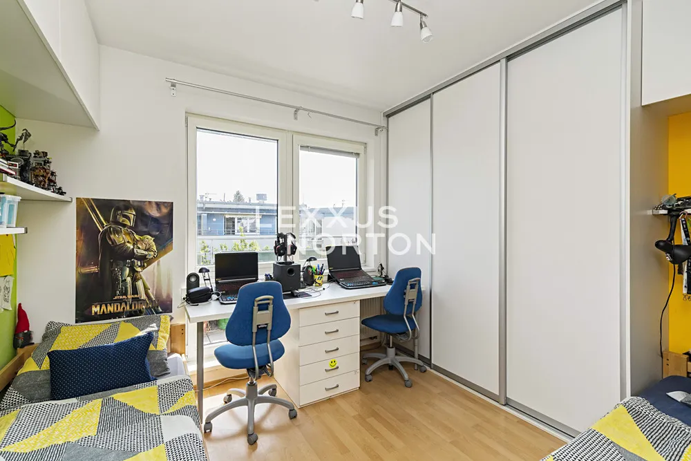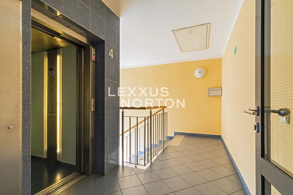 Byt je dispozičně řešen jako bezbariérový, východně orientovaný 3+kk, dominantou bytu je světlý obývací pokoj (26,2 m2) s výstupem na terasu (13 m2) s výhledem do parku a zeleného vnitrobloku. Dále ložnice (14,6 m2) a dětský pokoj (12 m2) se samostatnými vstupy z chodby. Výstup na terasu je ze všech pokojů, podél celého bytu. Prostorná chodba s maximálním využitím pro vestavěné skříně, koupelna s vanou a samostatné WC.