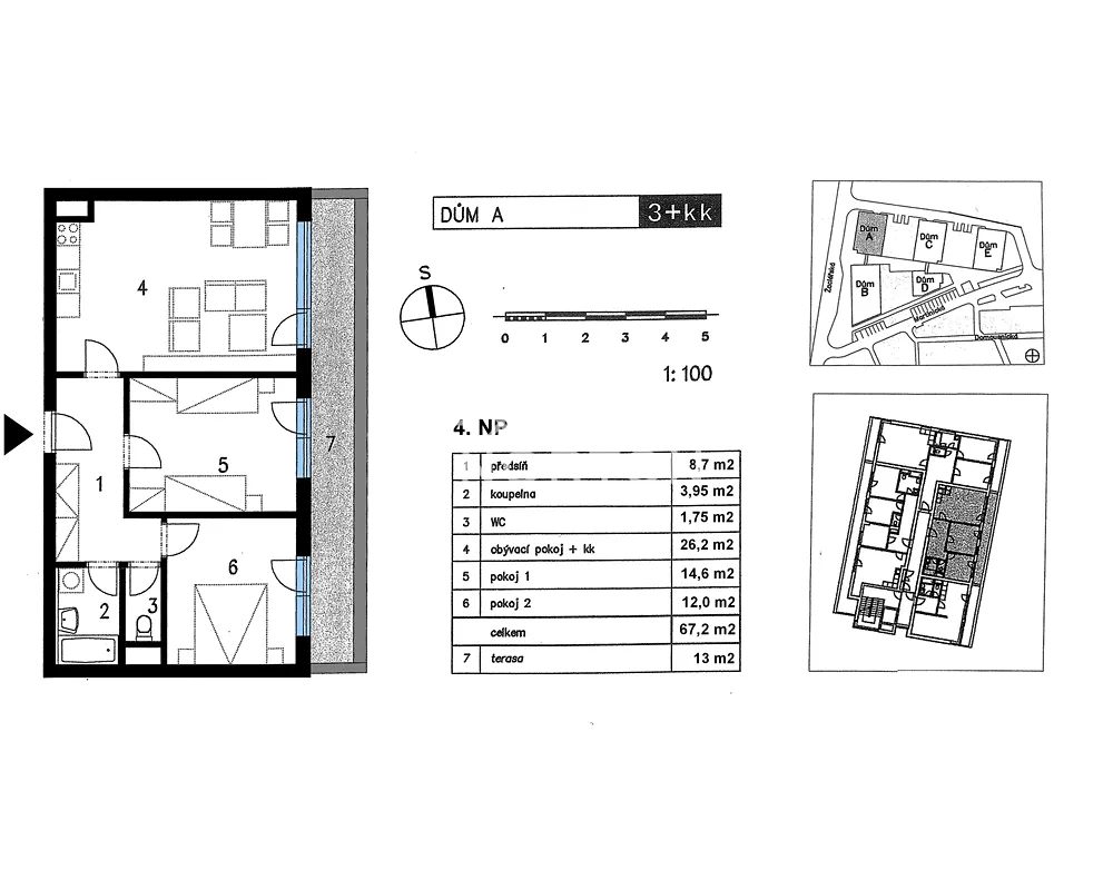 Prodej bytu 3+kk (67 m2) s terasou o výměře 13 m2 a sklepem o výměře 1,5 m2.