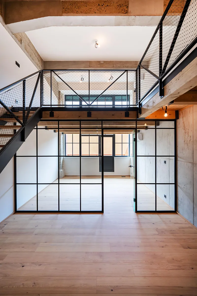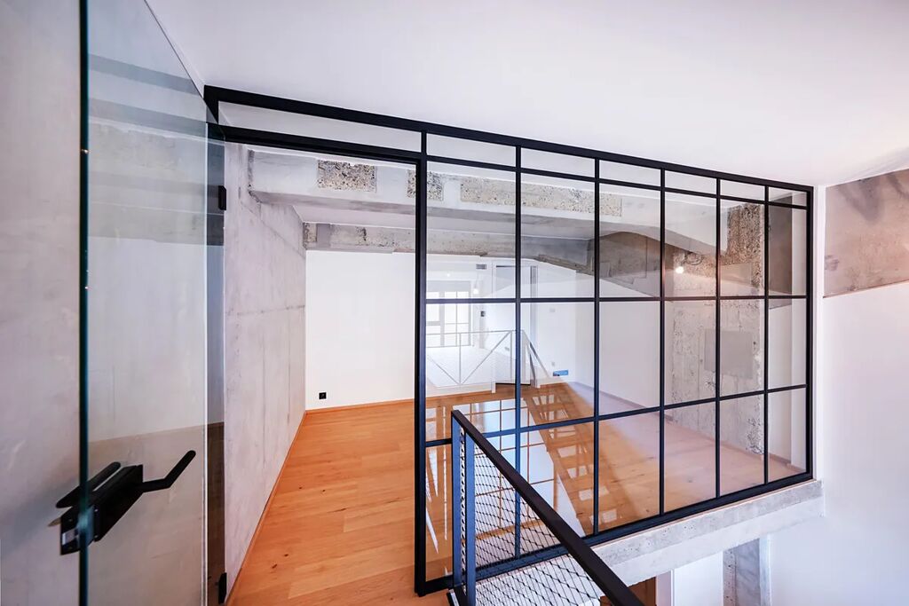 Vzdušné interiéry s vysokými stropy, velkoformátovými okny a přiznanými betonovými prvky vytvářejí osobitou atmosféru, která propojuje historii s moderním životním stylem.