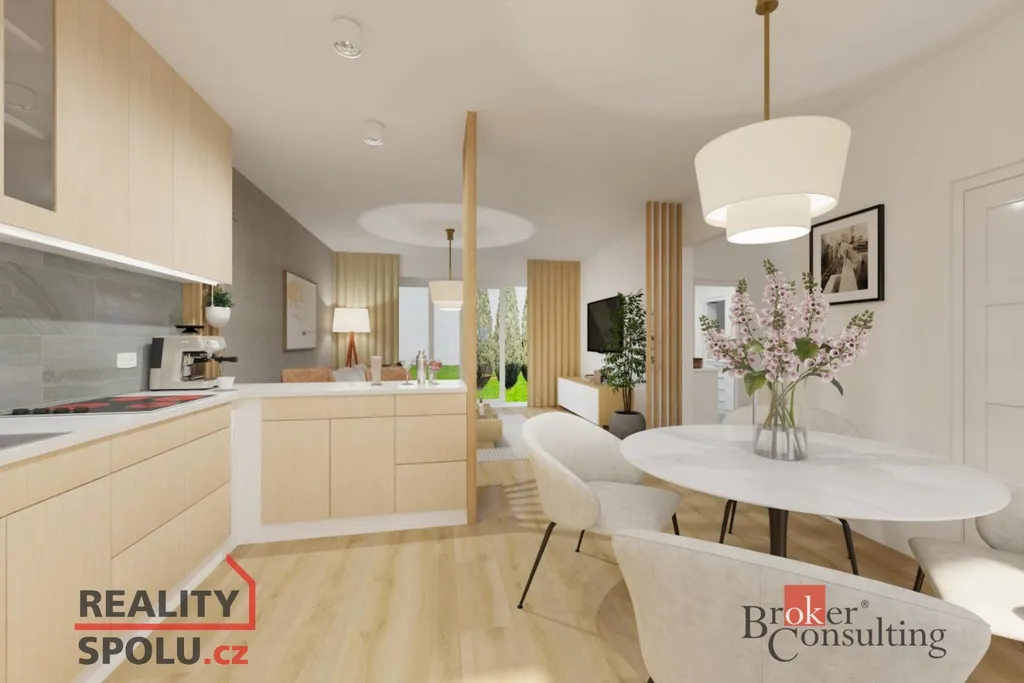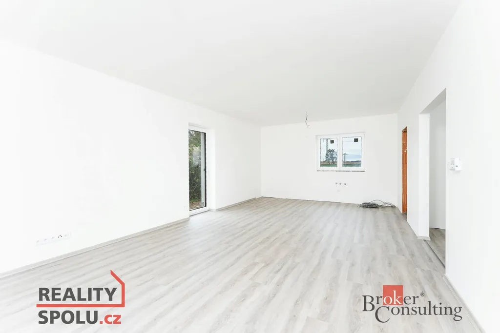 Nabízíme k prodeji moderní řadový rodinný dům o dispozici 4+kk, s obytnou plochou 120 m² a pozemkem o velikosti 387 m². Dům se nachází v závěrečné fázi výstavby – v interiéru právě probíhá instalace vnitřních dveří, exteriér čekají poslední terénní úpravy. Kolaudace je plánována na první polovinu příštího roku.