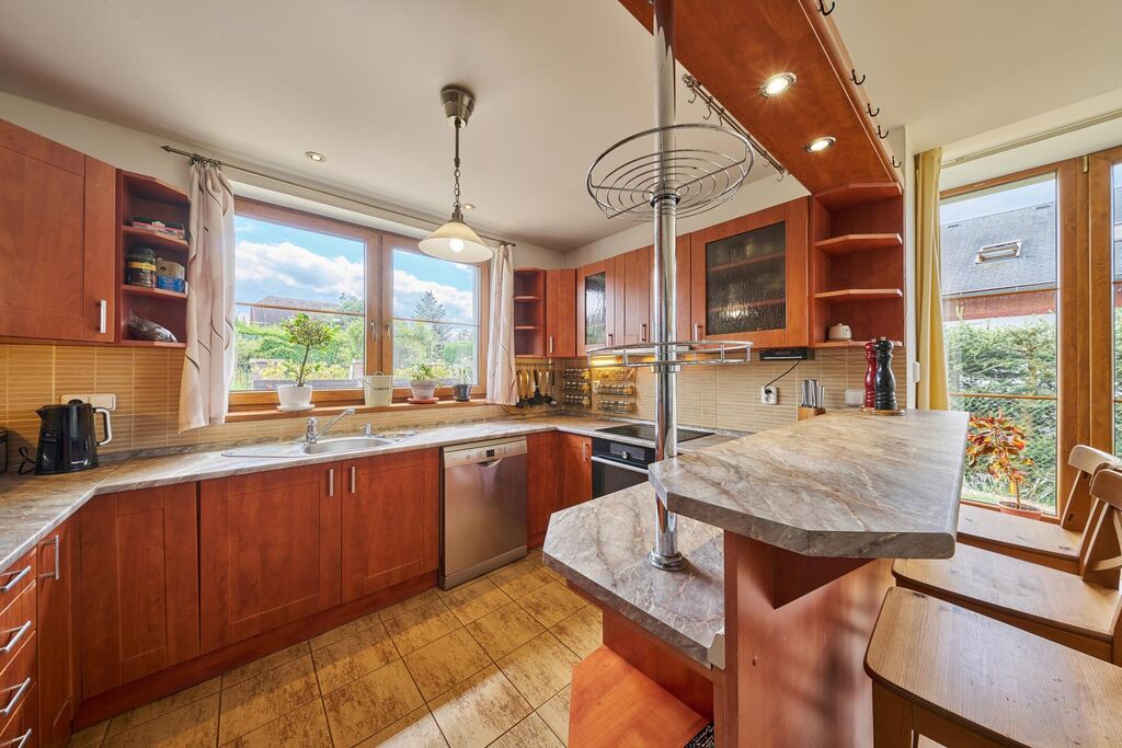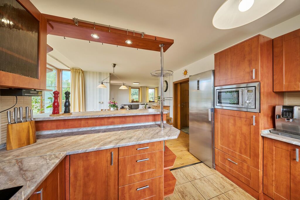 Při výstavbě byly použity kvalitní materiály a zařizovací předměty - kuch. linka s množstvím pracovního a úložného prostoru a vest. spotřebiči (varná deska, el. trouba, 60cm myčka, digestoř, mikr. trouba), interiérové dveře posuvné do pouzdra, kvalitní sanitární zařízení, domácí videotelefon ad.