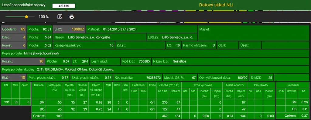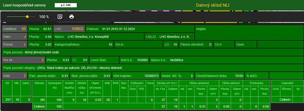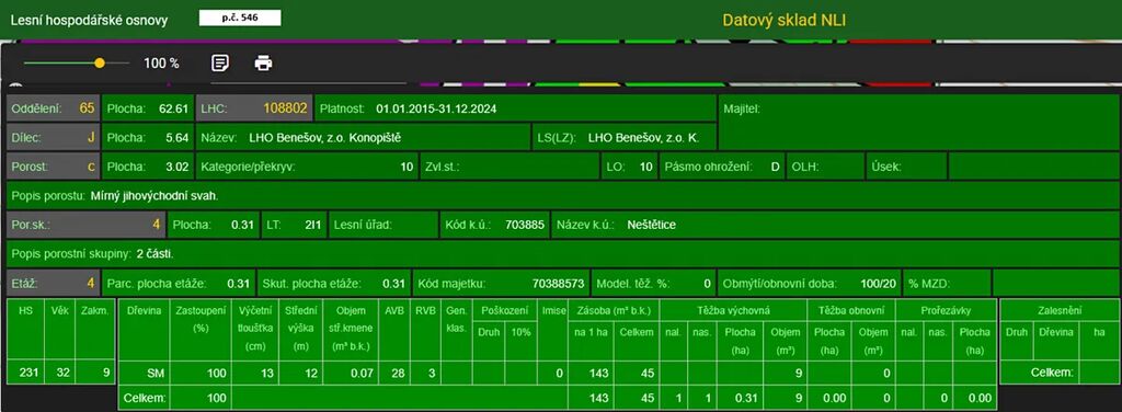 dále p.č. 546 vedená jako lesní pozemek o celkové výměře 26 630 m2, vlastníme podíl 1/8 tudíž 3 329 m2,