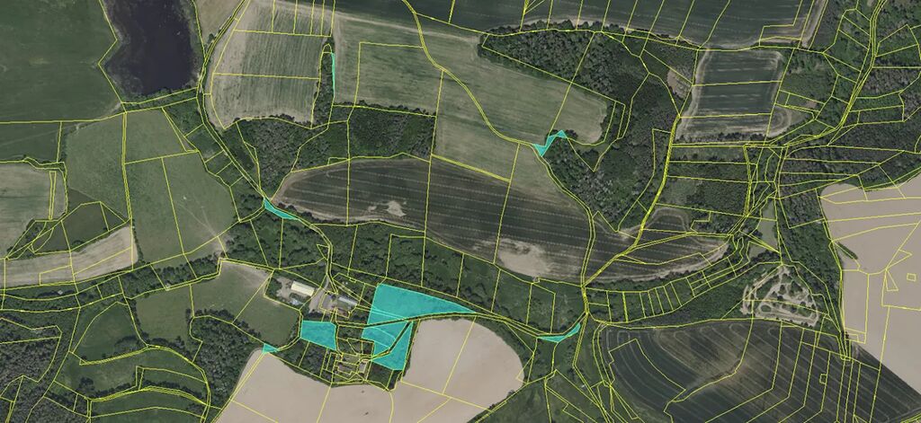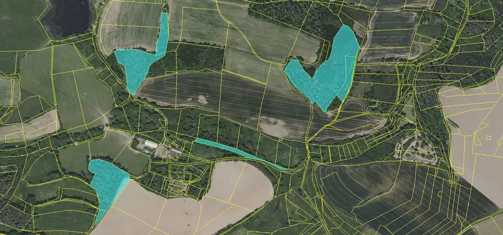 Vlastníme podíl 1/8  s celkovou výměrou pozemků 9 639 m2.