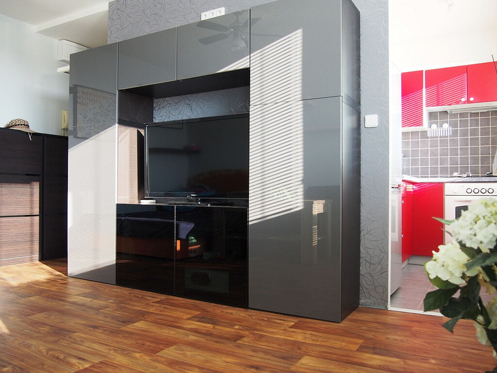 Dlouhodobý pronájem zařízeného a zcela nekuřáckého bytu 1+kk s velikou zasklenou lodžií (6m²) v 5. nadzemním podlaží domu - vyhledávaná a atraktivní lokalita PRAHA 4 - Podolí - v těsném sousedství rozlehlého parku "Na Pankráci". Bytový dům (celkem 23 bytů vchod) se nachází již na samém okraji sídliště - výhled na Pražský hrad, orientace celého bytu je na jihozápad. Byt je po celkové kompletní rekonstrukci - koupelna nově řešena prostorným zděným sprchovým koutem se skleněnou zástěnou, hydromasážní sprcha, mramor vanička. Součástí je kvalitním vybavení - k dispozici vestavěná šatní skříň se zrcadlem, zánovní pračka, nová nerez lednice s mrazákem, plynový sporák, žaluzie, garnyže, osvětlení - úsporné žárovky, stropní větrák, přídavný zámek na dveřích. Nábytek - komody, tv police, stolek, sedací souprava, nové dvojlůžko, botník, regály v komoře - umístěné v těsném sousedství bytu
