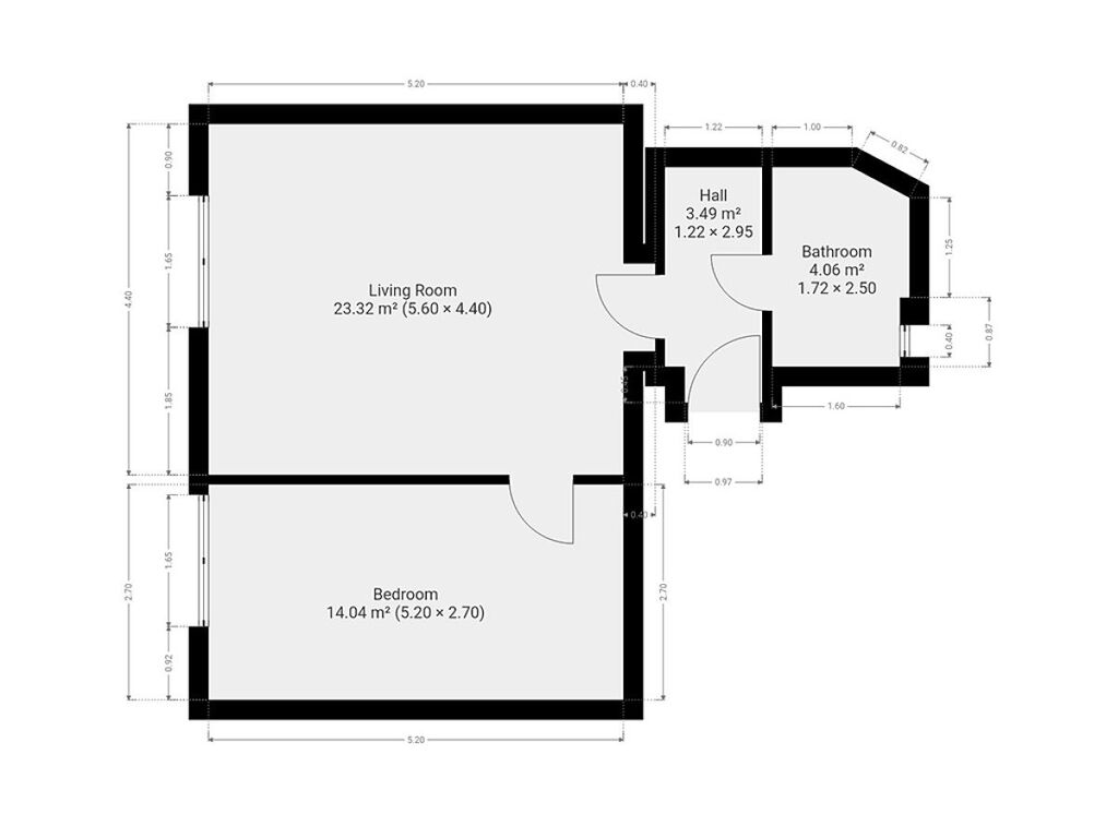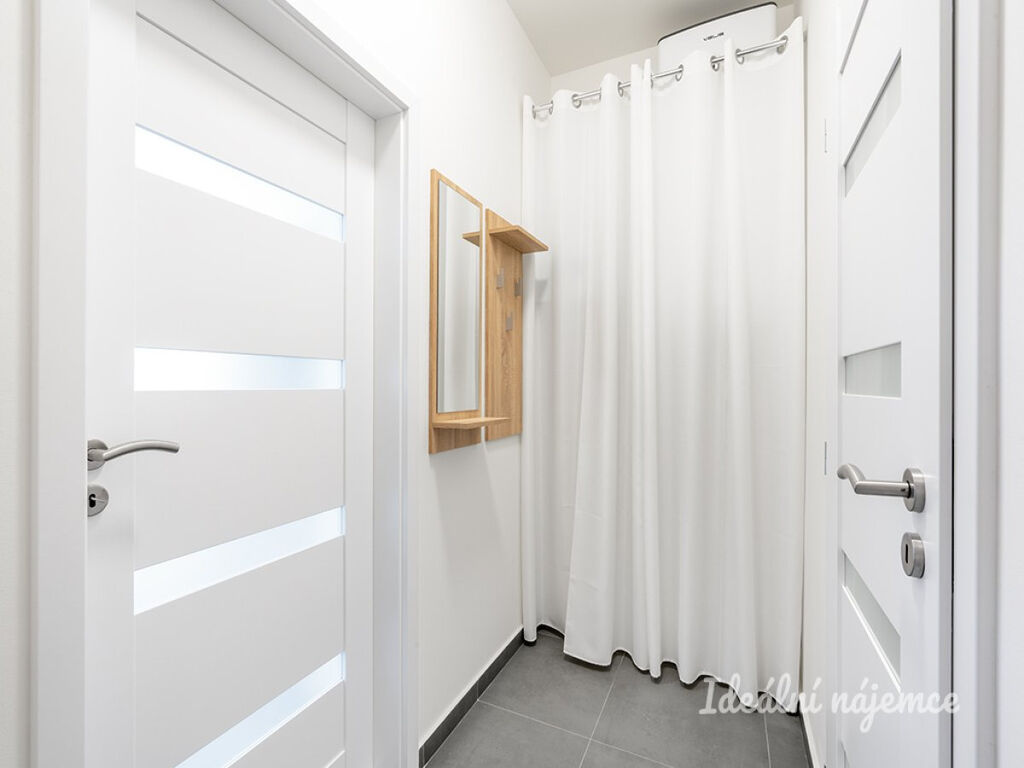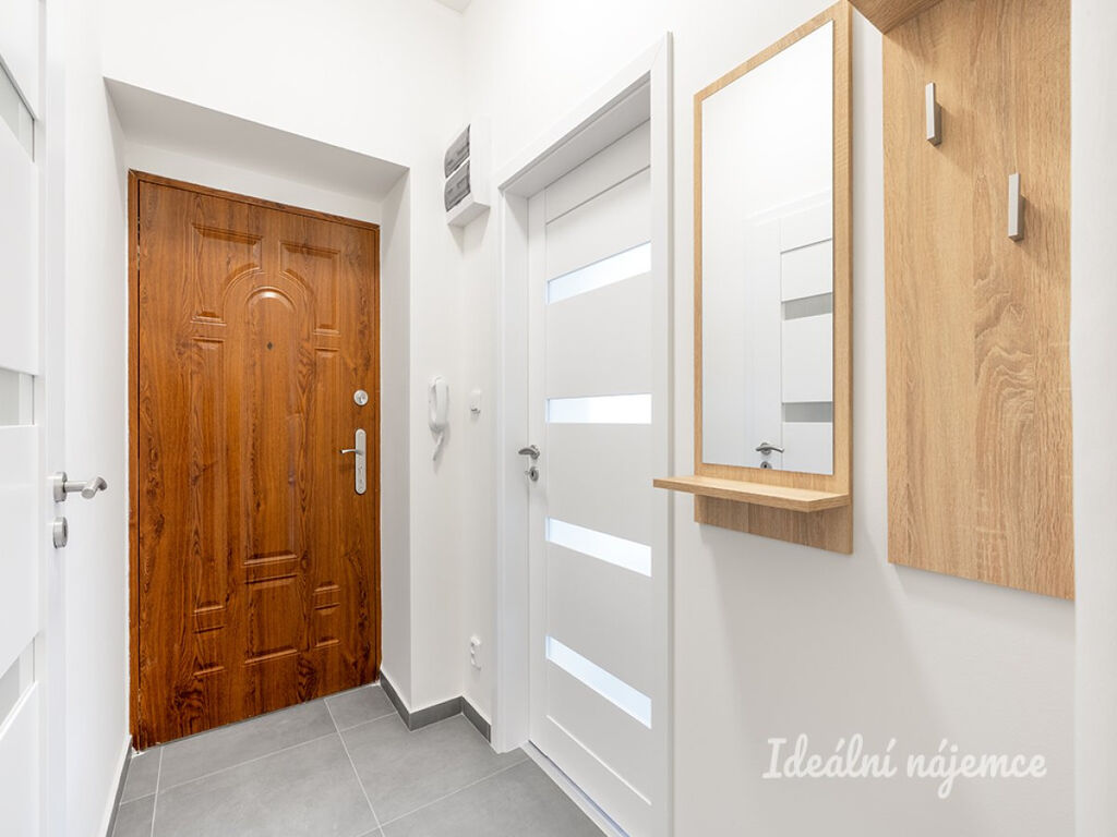 Byt je nabízen nezařízený, což dává možnost uzpůsobit si interiér podle vlastního vkusu. Kuchyně je vybavena lednicí s mrazákem, elektrickou troubou, sklokeramickou varnou deskou, myčkou, digestoří a praktickým úložným prostorem. Obývací část disponuje rozměrným a světlým prostorem, který lze vybavit jak sedací soupravou, tak i například jídelním koutem. K dispozici je rovněž jeden samostatný pokoj, který může sloužit jako ložnice. Koupelna je vybavena sprchovým koutem, umyvadlem, toaletou, koupelnovou skříňkou a pračkou.