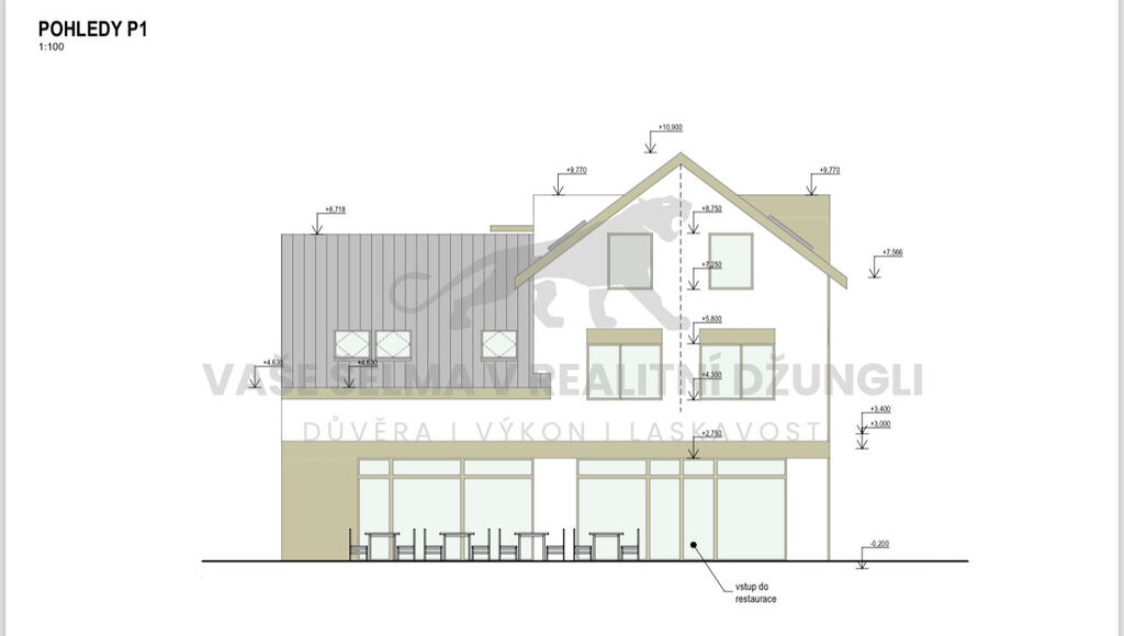 uvažovaný rozsah je vidět na navrhované studii a nebo na budově zrcadlově umístěné u vstupu do areálu, jak je vidět na přiložených fotografiích. Tím by se podlahová plocha navýšila na 500+ m2. Níže je výčet možností dle územního plánu.