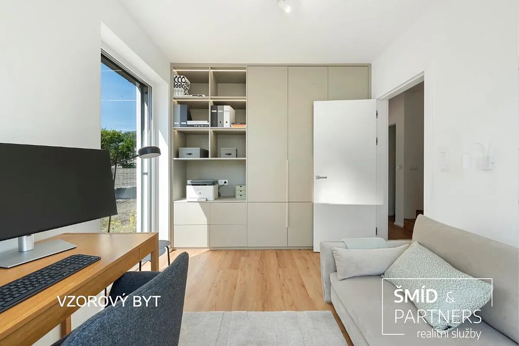 Samotná bytová jednotka o celkové obytné ploše 114 m2 bude poskytovat komfortní bydlení i početnější rodině. Dvě samostatné koupelny, technická místnost pro pračku a sušičku, úložný podschodišťový prostor... Pokud k tomuto připočtete ještě čtyři ložnice a obývací pokoj s kuchyní snadno propojitelný s terasou, získáte všechny atributy skvěle využitého prostoru. A v exteriéru tomu není jinak. K jednotce je vyčleněna parkovací stání přímo před ní a disponuje samostatným vstupem na zahradu. Příprava pro venkovní stínění umožňuje efektivní regulaci teploty bez nutnosti aktivního chlazení, což přináší další úspory. Chcete jít ještě dál? Nabízíme možnost rozšíření o solární panely a bateriové úložiště.