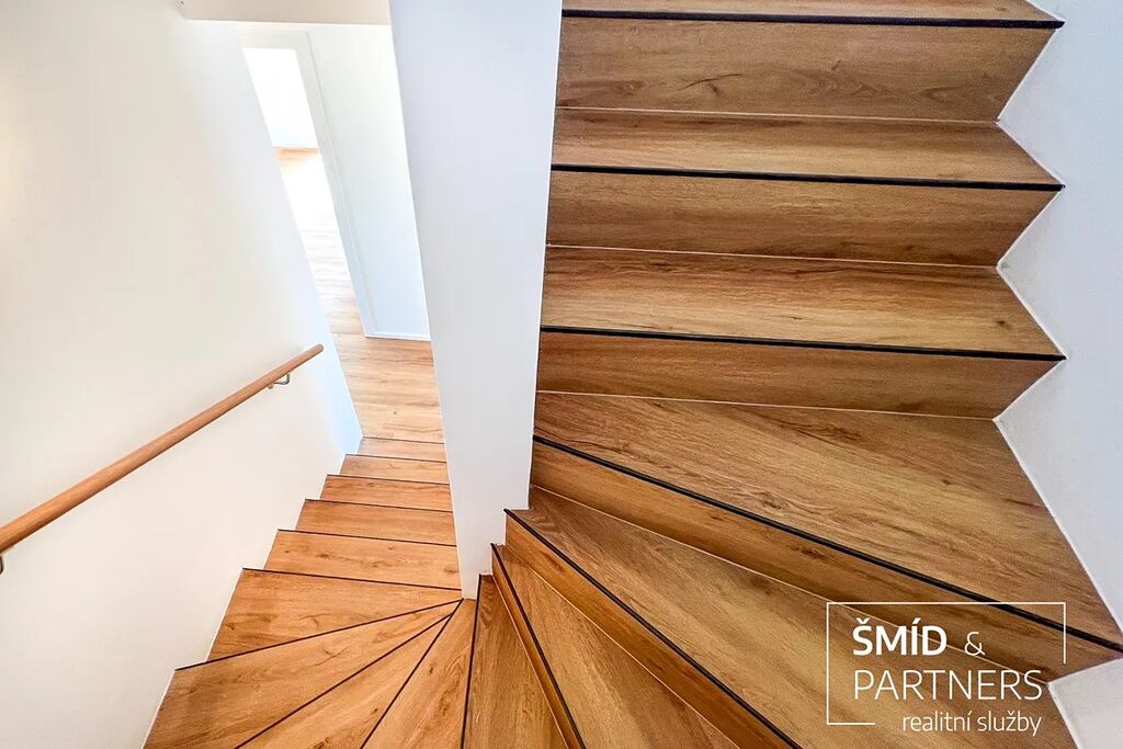 Ve 2NP se nachází tři ložnice, druhá koupelna vybavená vanou a technické zázemí pro pračku, sušičku a další nezbytné domácí náčiní.