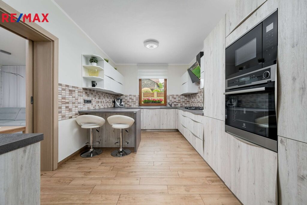 - Vytápění domu je podlahové a je zajištěno plynovým kondenzačním kotlem. Obývací pokoj a chodbu lze vytápět kachlovými kamny.