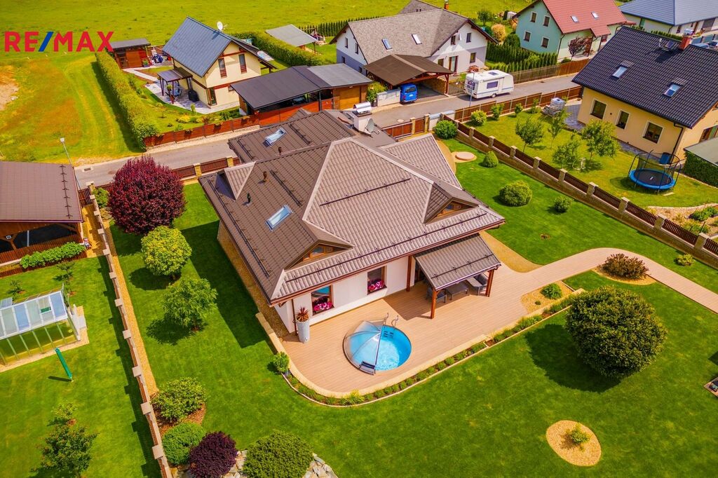 Dům je o dispozici 5+kk a není podsklepen, na každém patře je koupelna s WC. Ve 2. NP se nachází balkón s výhledem na Krkonoše a do zahrady. Součástí domu je prostorná garáž sloužící též jako dílna. Na zahradě a v okolí domu naleznete také zahradní domek s místem pro grilování, samostatnou ovocnou zahradu se stromy a skleníkem a zastřešené parkovací stání pro 3 vozy.