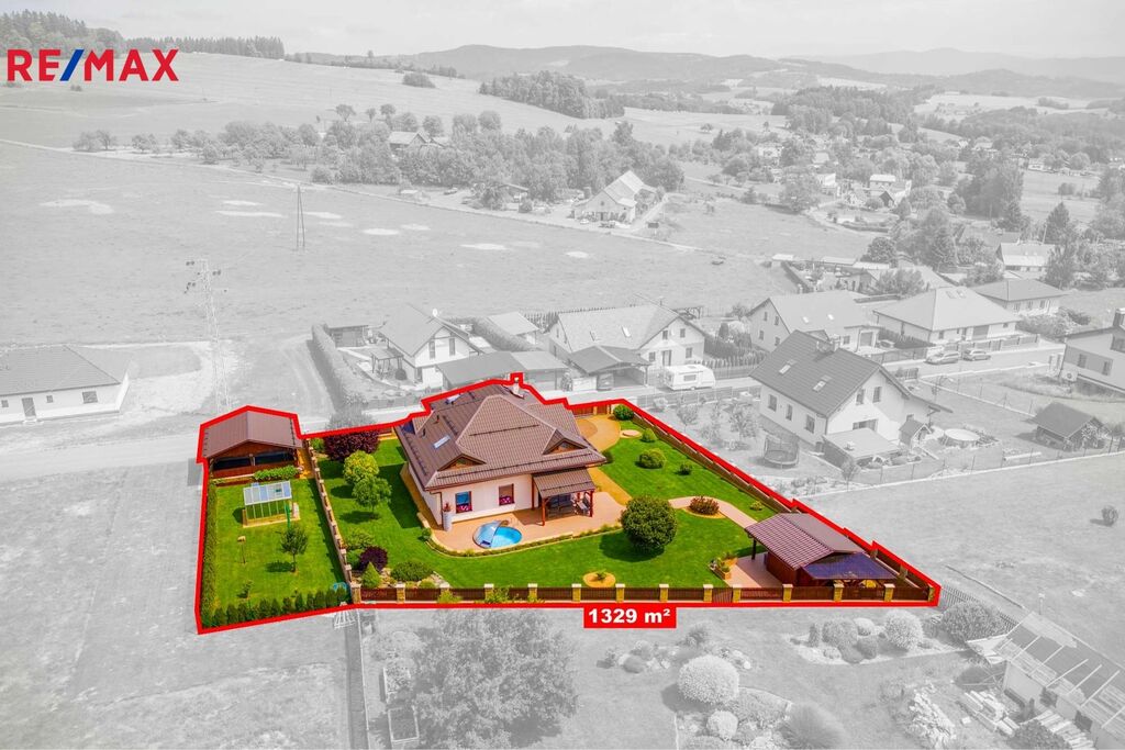 Představuji Vám do nejmenšího detailu promyšlený a špičkově udržovaný moderní dům na úpatí Krkonoš. Jedná se o prostorný, dvoupodlažní dům postavený ve vysokém standardu, který má užitnou plochu 232 m2 a patří k němu krásná udržovaná zahrada se zastřešenou terasou o výměře 1.183 m2. Dům se nachází v Držkově, jen kousek od centra města, a přitom v klidné rezidenční čtvrti, v těsné blízkosti přírody a běžeckých stop.