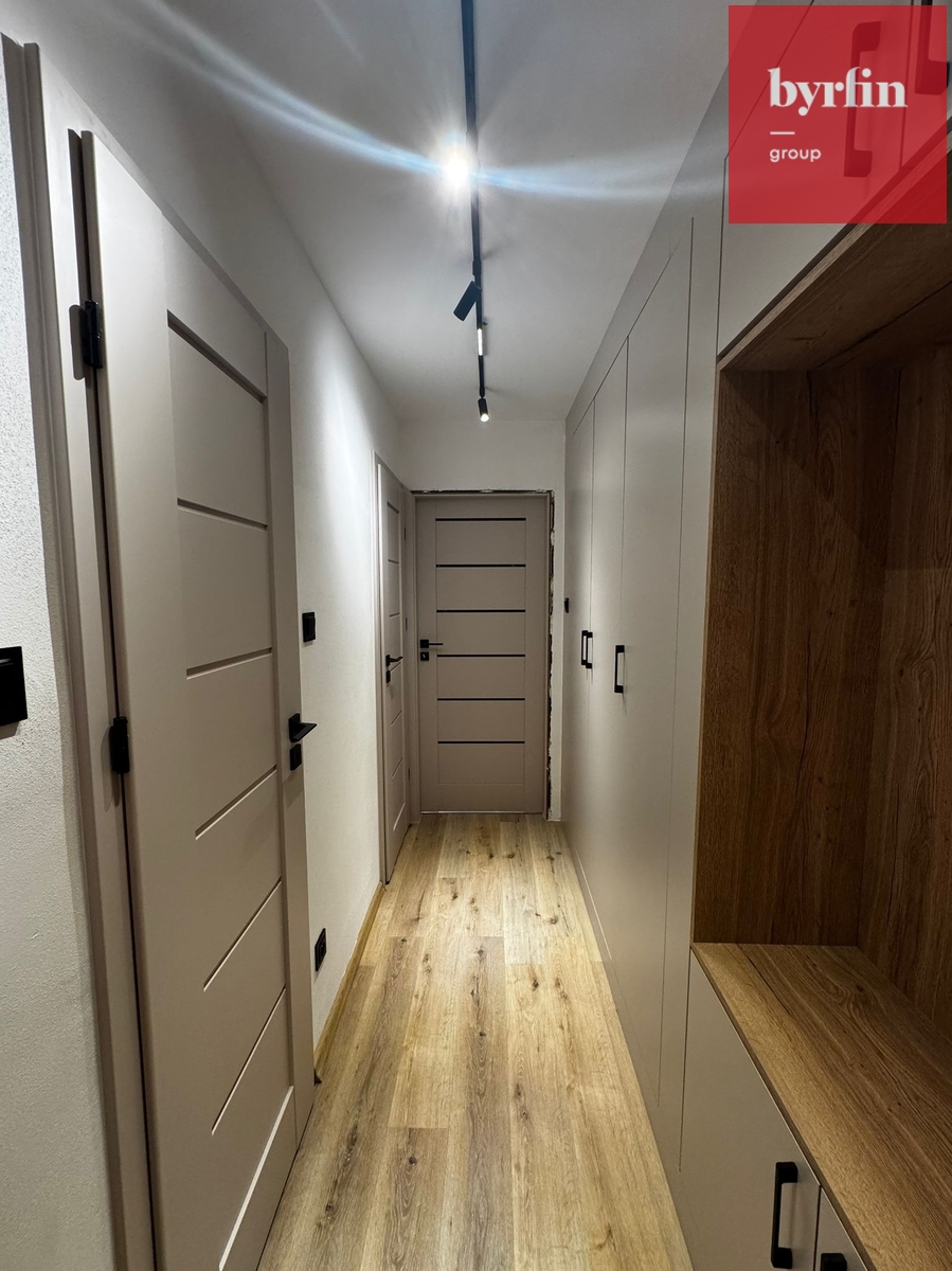 Součástí bytu je koupelna a samostatné WC, což zvyšuje komfort každodenního bydlení. Byt je velmi světlý a orientovaný na dvě světové strany, díky čemuž je příjemně prosvětlený po celý den. V bytě byly použity sádrokartonové podhledy a lamelové designové doplňky, které podtrhují moderní atmosféru interiéru. K bytu náleží také sklepní koje pro uskladnění věcí.