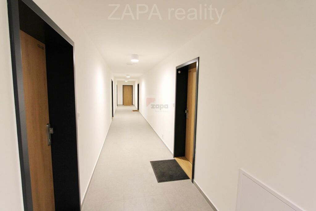 Byt se nachází ve 3. patře s výtahem, je vybaven novou kuch. linka Gorenje s vestavěnnými spotřebiči (lednice, el. trouba, sklokeramická deska 4 plotýnka), myčka není, ale lze ji dle dohody dokoupit. Jinak je byt nezařízený. V koupelně je vana a WC, nová pračka, na podlahách dlažba nebo kvalitní vinylové podlahy. Byt má prostornou praktickou komoru, k dispozici je v přízemí domu vlastní sklep, společná kolárna a vlastní garážové stání.