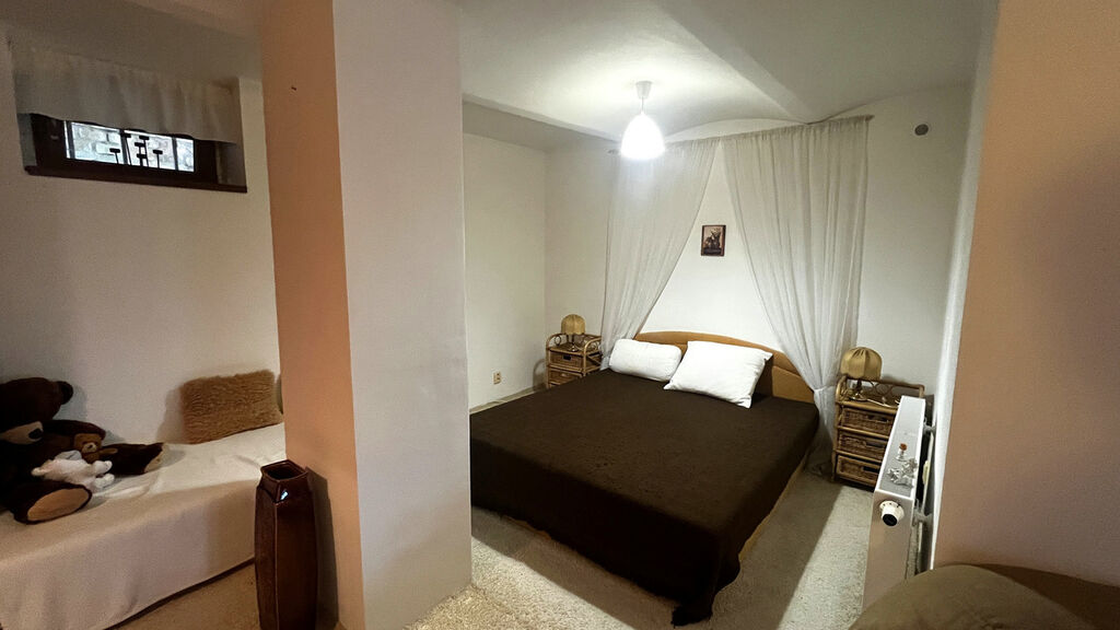 Větší dům (9+1) – jeho přízemí (3+1) prošlo kompletní rekonstrukcí v roce 2019 a nabízí moderní a komfortní bydlení. Patro je připraveno k rekonstrukci dle vašich představ. Součástí domu je garáž, místnost na dřevo a vytápění zajišťuje plynový kotel a krb s výměníkem, napojený na radiátory i v patře. V obývacím pokoji nechybí nová klimatizace Whirlpool.