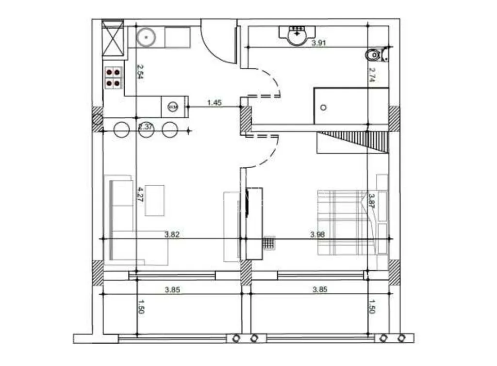 Nabízený byt má započtenou plochu 87 m2 (včetně podílu na společných prostorách, přibl. 20 % ze započtené plochy). Byt má dispozici typu 2+kk (obývací pokoj s kuchyňským koutem, ložnice, koupelna s WC) s lodžií v obývacím pokoji a v ložnici. Byt se nachází na 3. patře čtyřpatrové budovy, výhled je na klidný bulvár Mamsha a moře vzdálené přibl. 200 m vzdušnou čarou. Orientace bytu je východní.