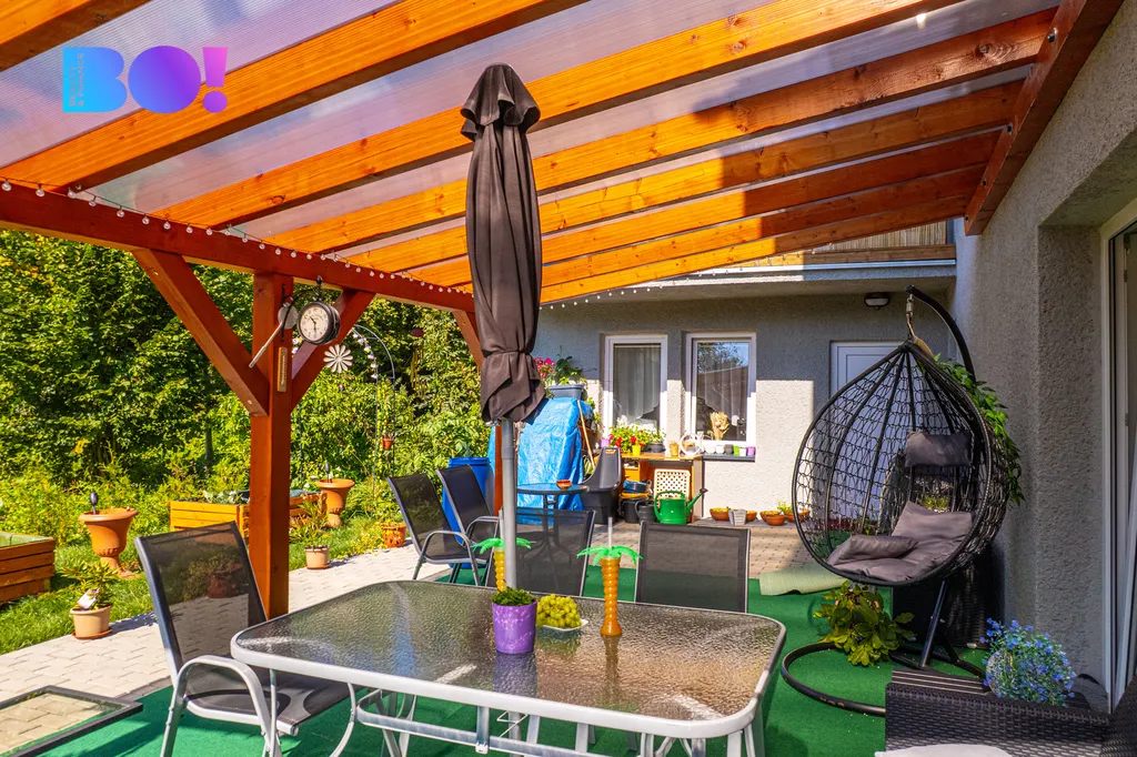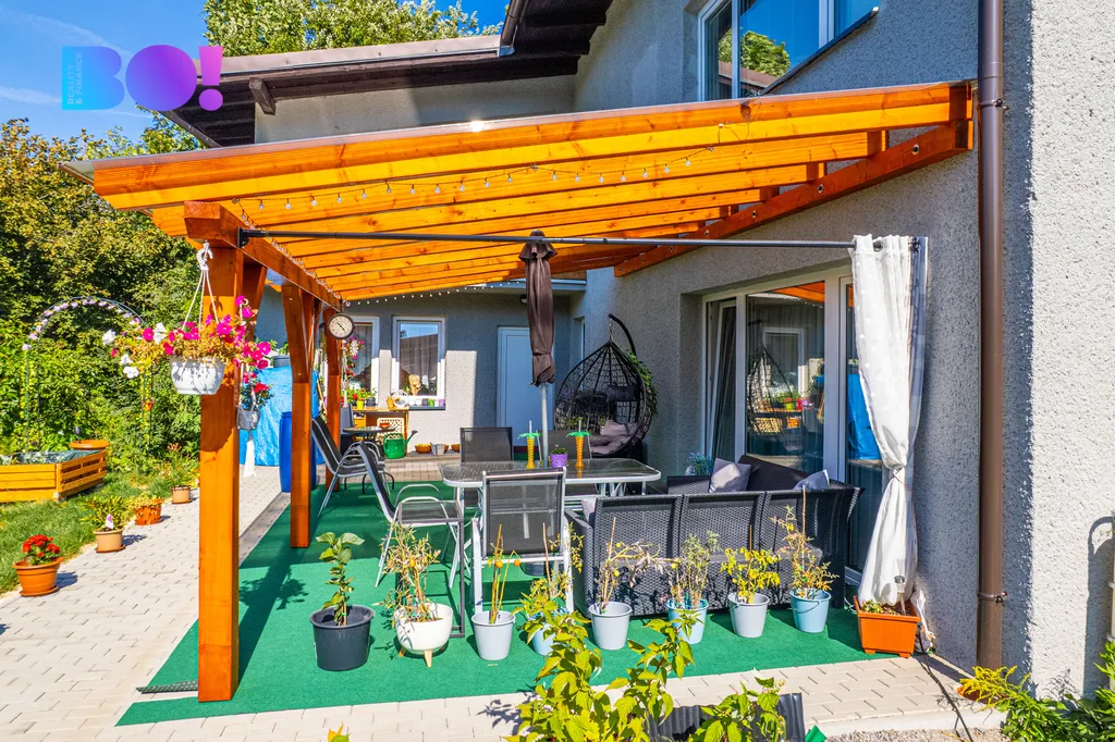 - zahrada s krytou terasou ideální pro odpočinek a posezení,