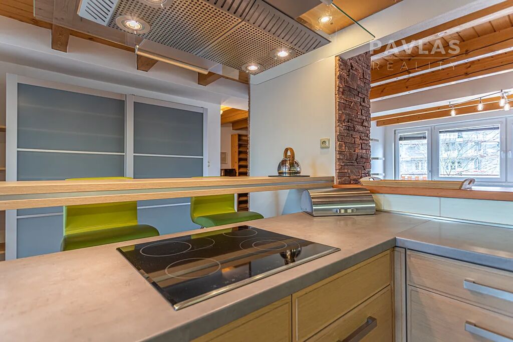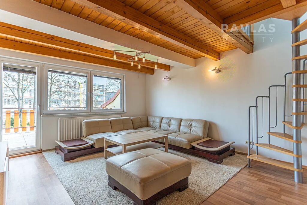 Zprostředkujeme k dlouhodobému pronájmu mezonetový byt 2+1 s rozlohou 94 m² s terasou 16 m², parkovacím místem a 3 m² sklepem. Tento vzdušný byt je vhodný pro jednotlivce, páry či rodinu. Nabízí nadstandardní úložné prostory, prostornou a plně vybavenou kuchyni ve tvaru U s nadstandardním úložným prostorem, relaxační koupelna s rohovou vanou, multifunkční horní patro se šatnou a pracovním koutem a terasu o velikosti 16 m² orientovanou na východ.