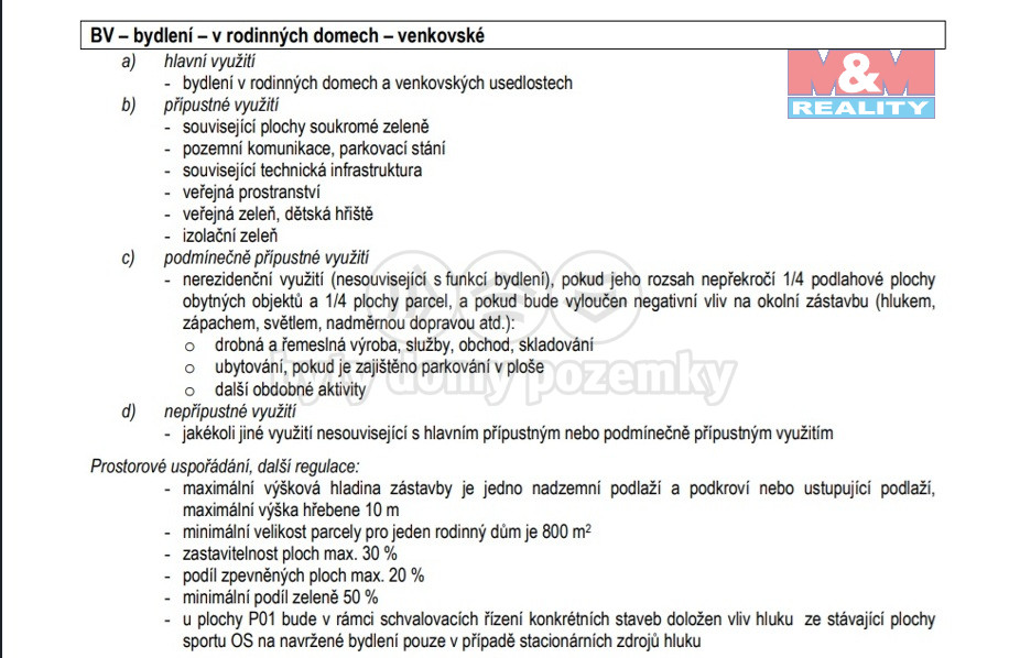 – minimální výměra parcely pro rodinný dům je 800 m²,