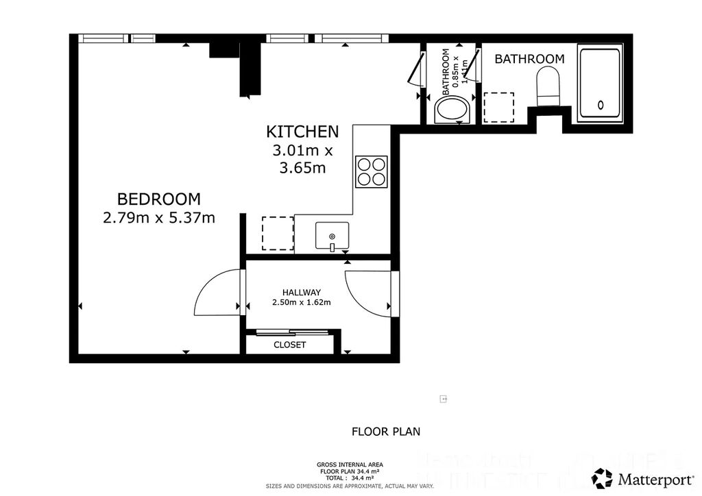 V předsíni je připravena praktická šatní skříň. Hlavní místnost je řešena do tvaru L, takže nabízí přirozené rozdělení na obytnou i jídelní část s kuchyňským koutem. Díky velkým oknům je prostor krásně prosvětlen a působí vzdušně. Použité přírodní tóny navíc dávají volnost vaší kreativitě při zařizování. V koupelně je sprchový kout, toaleta a pračka.