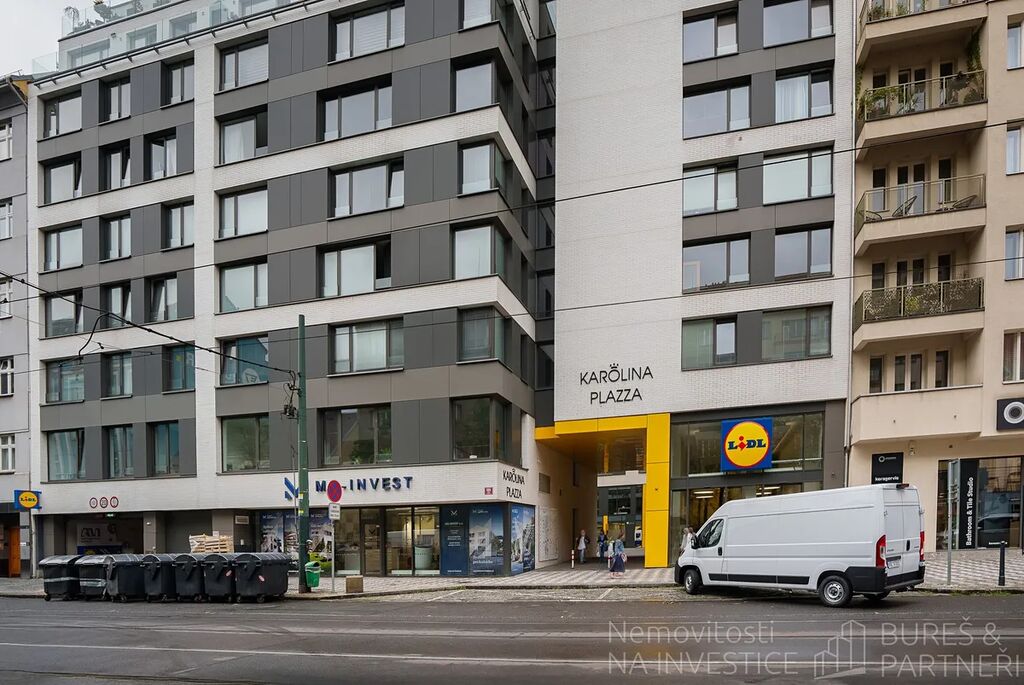 Byt je součástí moderní rezidence Karolina Plazza, která kombinuje nadčasovou architekturu s historickým kouzlem Karlína. Tato pulzující čtvrť, která je právem považována za jednu z nejžádanějších čtvrtí Prahy, propojuje moderní architekturu s industriální historií a nabízí ideální mix městského života a pohodlí. Na Sokolovské ulici najdete služby, které zpříjemní každodenní život, a zároveň se odtud snadno dostanete do zeleně, parků i kulturních míst. V okolí nechybí široká škála obchodů, kaváren, bister, restaurací ani možností sportovního vyžití. Díky tramvajové zastávce pár kroků od domu a stanici metra Křižíkova za rohem je zajištěna skvělá dopravní dostupnost a rychlé spojení do centra i dalších částí města.