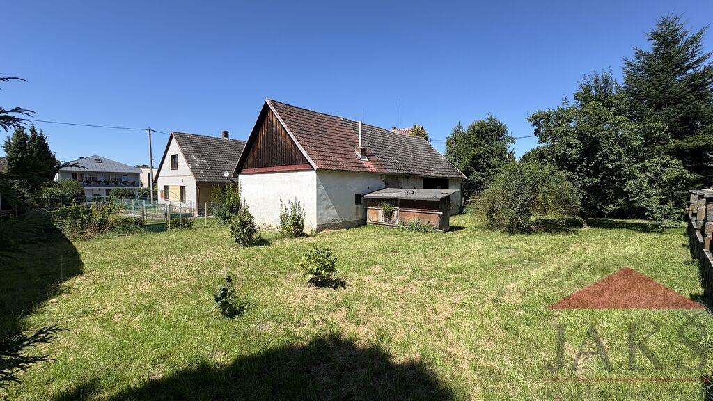 Popis: přízemí: vstupní veranda, kotelna (kotel na T.P. a el. boiler, schodiště na půdu, koupelna (vana, umyvadlo, vývody na pračku, oddělené WC), obytná kuchyň (kuch. linka s el. troubou a plynovými hořáky na P.B.) s jídelnou, 2x ložnice a obývací pokoj s dochovanou původní pecí; prostorná vysoká půda vhodná k vestavbě.