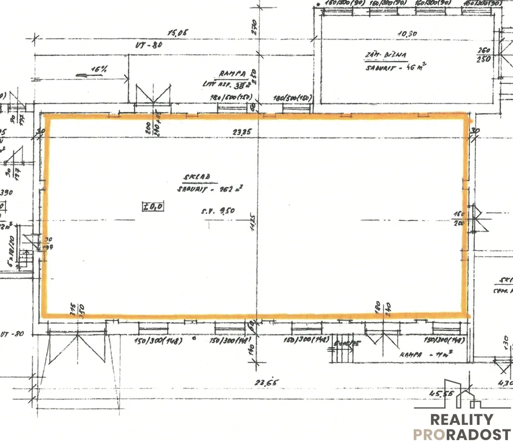 Sklad má vchod od cesty a lze k němu pohodlně přijet nákladní automobilem.