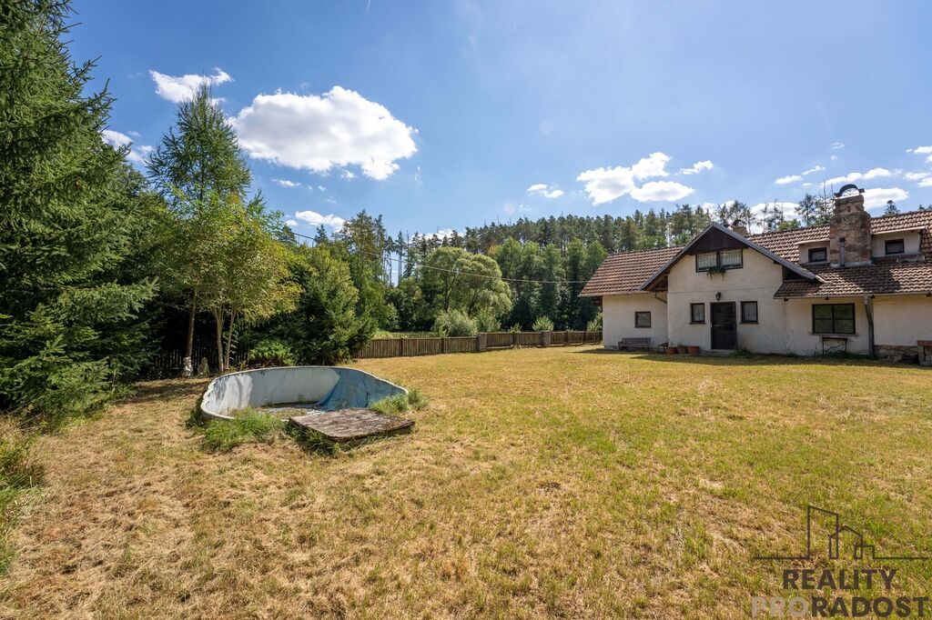 Rodinný dům leží na polosamotě a je obklopen vzrostlými stromy a loukami. Celková výměra pozemku je 1.614 m2, velká zahrada umožňuje obyvatelům domu využívat pozemek k odpočinku nebo aktivně k pěstování zeleniny a ovocných stromů nebo chovu domácích zvířat. Na pozemku je umístěn bazén, je zde prostor pro posezení v závětří domu.