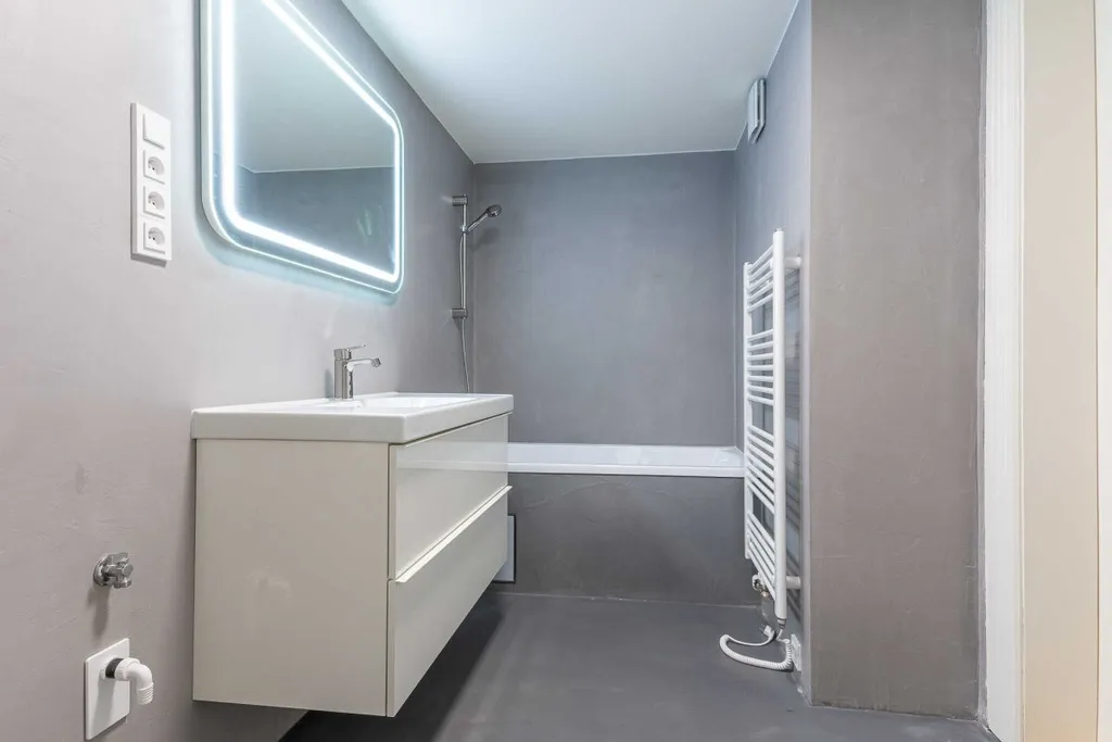 Byt se nabízí částečně vybavený. Moderní kuchyňská linka disponuje lednicí, myčkou, indukční deskou, vestavěnou elektrickou troubou a digestoří. Obývací část a ložnice jsou nevybavené. Součástí krásné koupelny je vana a umyvadlo se zrcadlem. Toaleta je oddělená.