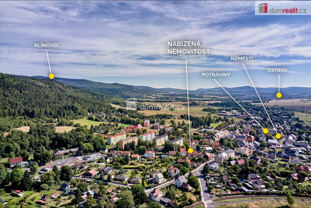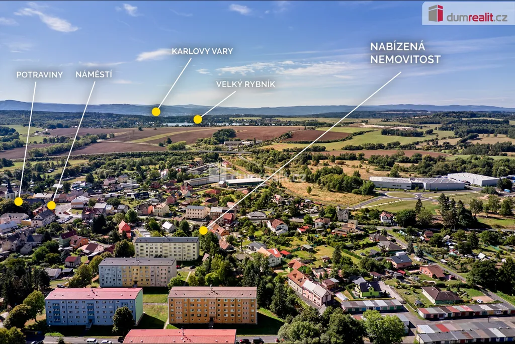 V exkluzivním zastoupení vám nabízíme prodej nově zrekonstruovaného rodinného domu s vlastním pozemkem v klidné lokalitě podkrušnohorské obce Hroznětín. Dispozice domu je 3+KK, kdy v přízemí je obytná místnost s kuchyňským koutem a vstupem na terasu s menší zahrádkou, koupelna s vanou a WC, chodba a technická místnost. V podkroví jsou dva samostatné pokoje, v jednom je možné připojení krbových kamen. Dům je možné jednoduše a levně rozšířit na dispozici 4+kk, viz ilustrační foto. Dům prošel celkovou precizní rekonstrukcí od základů až po krov a střechu. Vytápěn je elektrickým kotlem s rozvodem do radiátorů, ohřev vody zajišťuje bojler. V obci je všechna potřebná občanská vybavenost a vlaková i autobusová stanice. V okolí obce jsou lesy se širokou sítí cyklistických, turistických a běžeckých tras, lyžařská střediska Krušných hor jsou vzdálená 6 - 15 km, město Ostrov 5 km, Karlovy Vary 15 km. Tuto nemovitost lze hradit hypotečním úvěrem, který Vám rádi pomůžeme vyřídit v našem hypotečním centru. Ev. číslo: 652359.