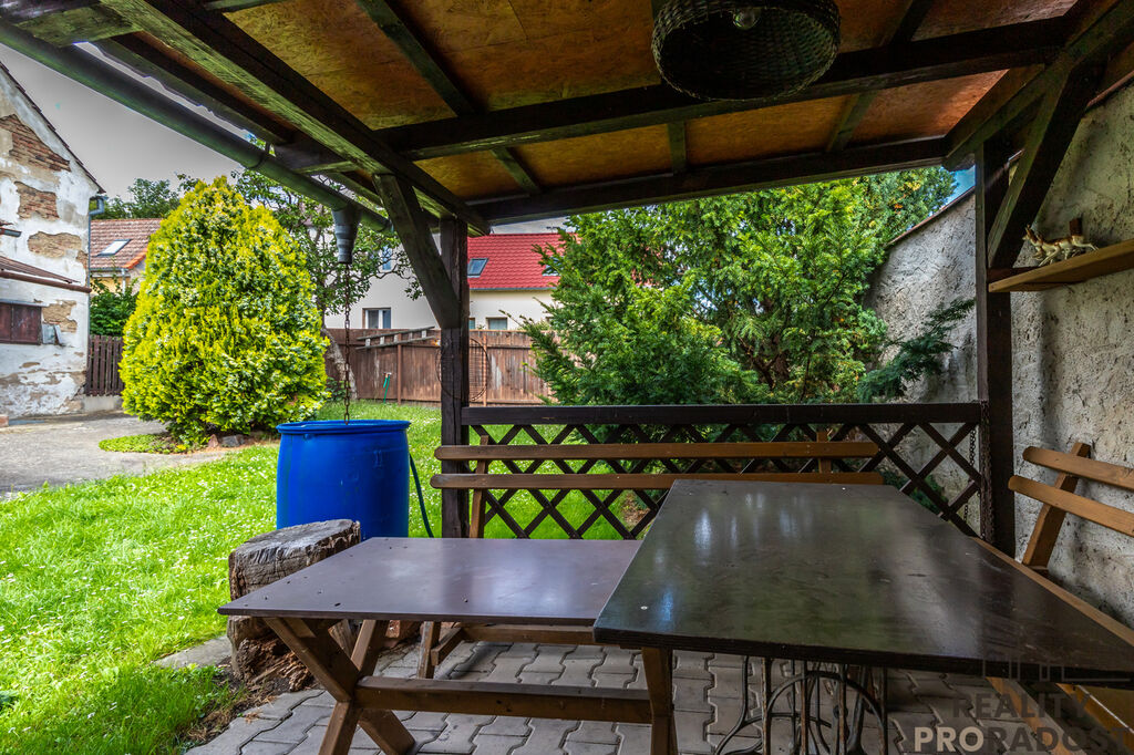 Na pozemku nalezneme pergolu s posezením, sklep, dílnu a chlívky a jímku.