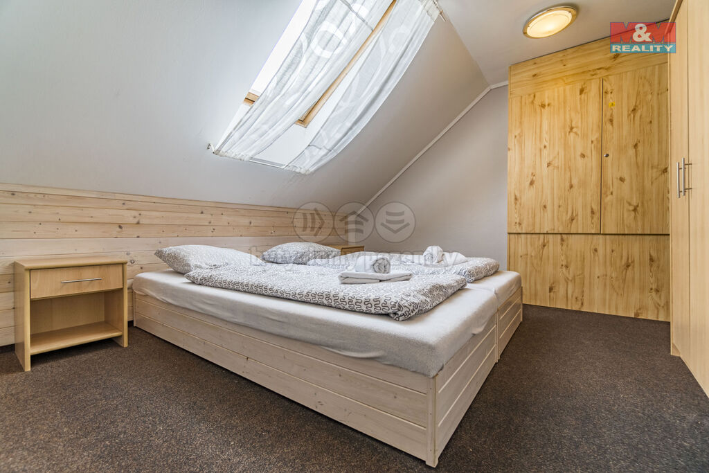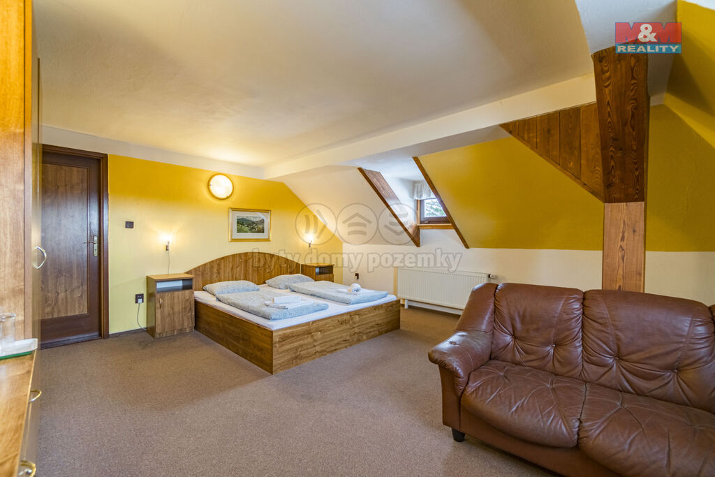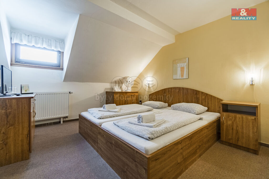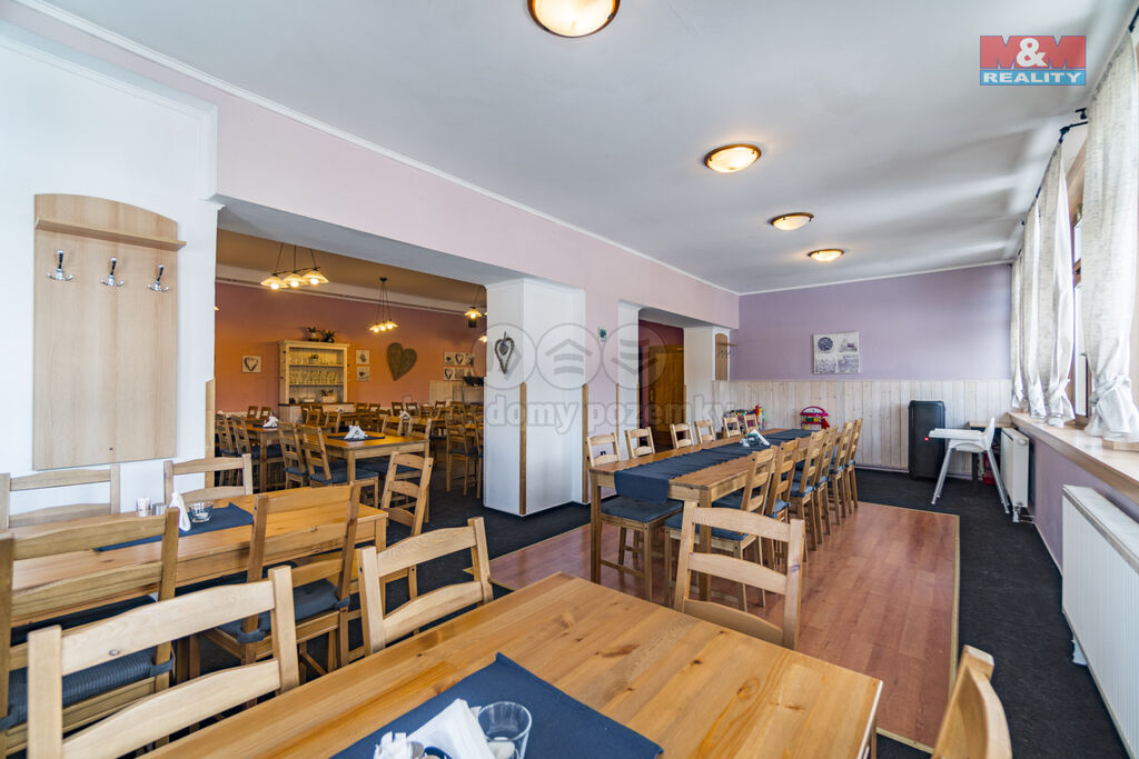 Ve výhradním zastoupení Vám nabízíme k prodeji zavedený útulný hotel v lůně Rychlebských hor, v malebné obci Černá Voda, která v poslední době zažívá nebývalý rozvoj z hlediska turismu, cykloturistiky a rodinné rekreace. Hotel disponuje kuchyní, restaurací, pivnicí a venkovní zahrádkou. Ubytovací kapacita čítá 30 lůžek v pokojích s příslušenstvím. Vytápění hotelu je řešeno tepelným čerpadlem. Pozemek s celkovou výměrou 7610 m2 umožňuje výstavbu dalších vedlejších objektů, případně umožňuje jiný účel využití. Okouzlí Vás panenská příroda s čistým ovzduším, s rybníky uprostřed lesů, zatopenými žulovými lomy a dalšími turisticky atraktivními místy. V samotné obci je škola, školka, obchody, pošta a několik pohostinských zařízení. Je to ideální místo pro rekreaci, odpočinek a relaxaci. Pro více informací a termín prohlídky mne neváhejte kontaktovat. S financováním rádi poradí naši hypoteční specialisté.