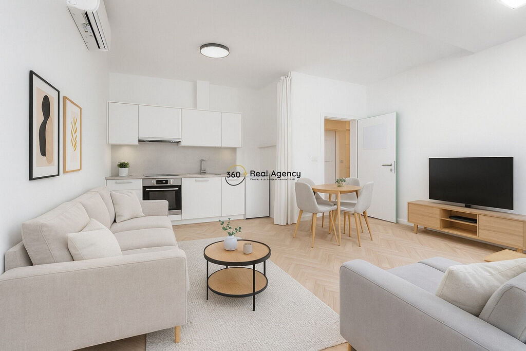 Ve výhradním zastoupení nabízíme k prodeji světlý byt 2+kk o velikosti 46,8 m² se sklepem (2,3 m²), umístěný v přízemí prestižního projektu Barrandov Hills.