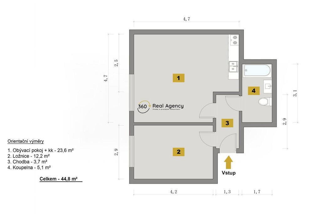 Byt 2+kk / 47 m² + sklep 2,3 m²