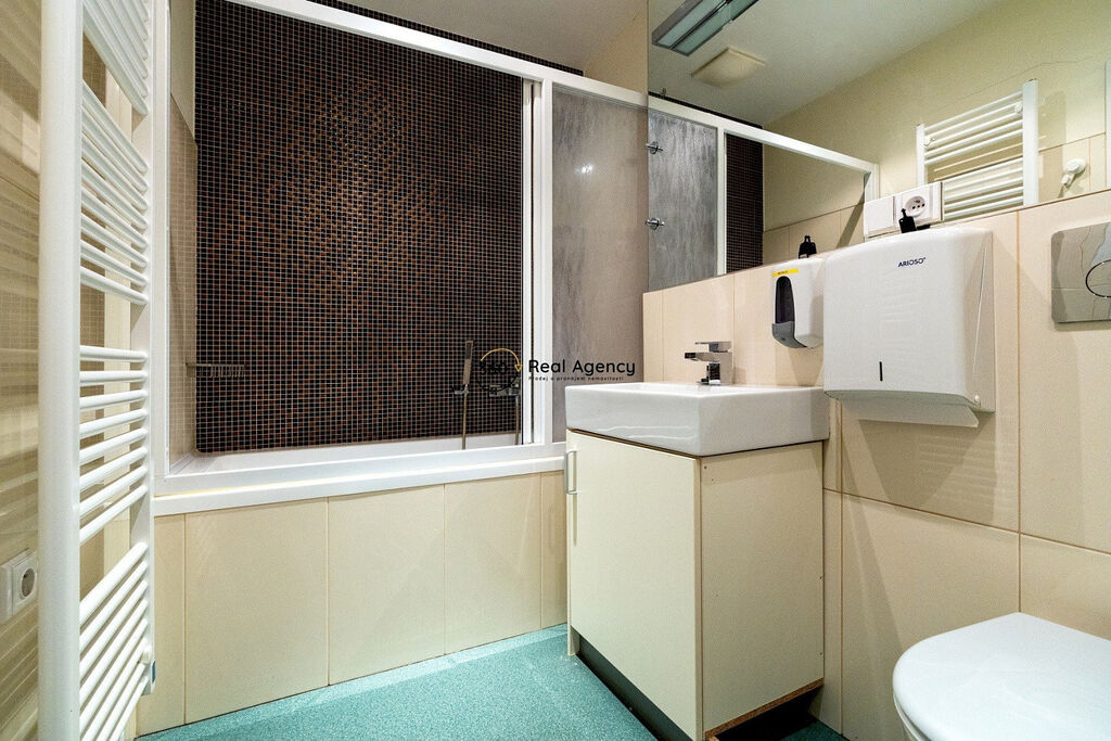 Byt disponuje obývacím pokojem s kuchyňským koutem (24,9 m²), ložnicí (12,6 m²), prostornou předsíní a koupelnou s vanou a toaletou. Díky své dispozici je vhodný nejen k komfortnímu bydlení, ale také jako kancelář nebo ordinace, což z něj činí zajímavou investiční příležitost.