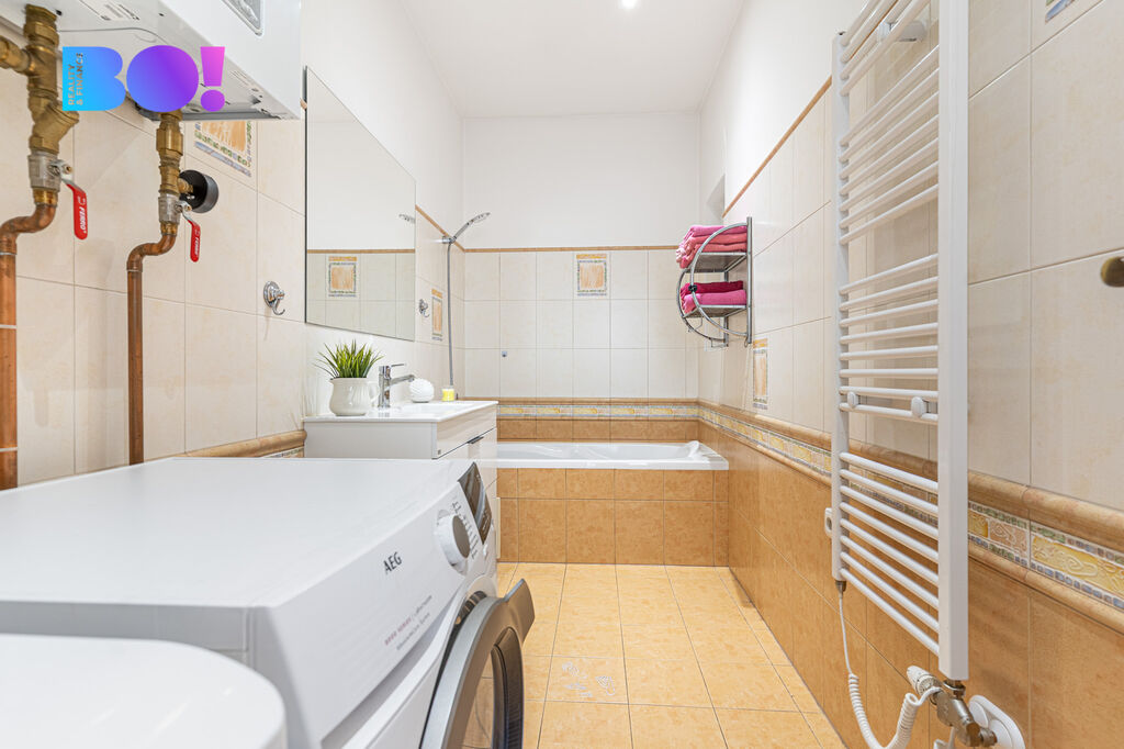 Byt se nachází ve vnitrobloku, což zajišťuje naprostý klid a soukromí, přestože se nacházíte v samém centru města. V okolí je veškerá občanská vybavenost, včetně mateřské a základní školy, obchodů, restaurací, lékařů, pošty a dětských hřišť. Tato lokalita je ideální pro rodiny s dětmi, ale také nabízí vynikající investiční příležitost.