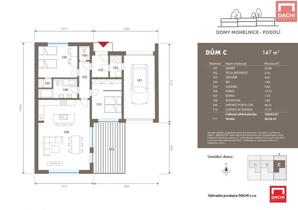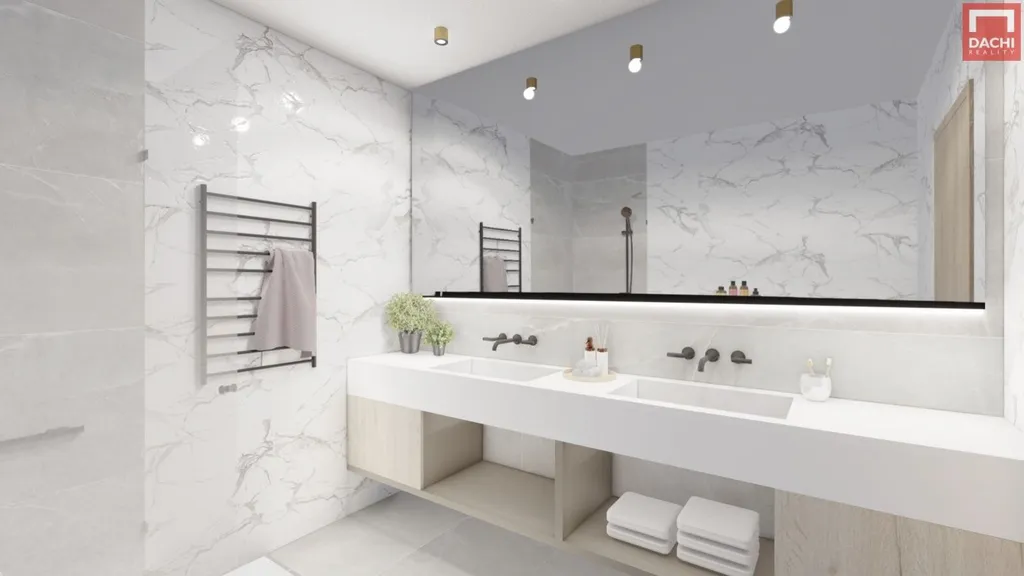 Součástí standardního vybavení jsou venkovní žaluzie, úsporné tepelné čerpadlo vzduchvoda, upravená zahrada i okolí před domem, příprava na instalaci solární elektrárny, prostorná garáž i venkovní parkovací stání. Dům je připraven k dokončení tak, aby si budoucí majitel mohl vybrat z více barevných variant podlah a obkladů podle svého vkusu. Standardní provedení je již zahrnuto v ceně a vyznačuje se vysokou kvalitou použitých materiálů i zařizovacích prvků, takže nový domov bude nejen funkční, ale i nadčasově elegantní.