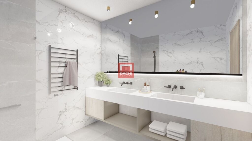 Součástí standardního vybavení jsou venkovní žaluzie, úsporné tepelné čerpadlo vzduchvoda, upravená zahrada i okolí před domem, příprava na instalaci solární elektrárny, prostorná garáž i venkovní parkovací stání. Dům je připraven k dokončení tak, aby si budoucí majitel mohl vybrat z více barevných variant podlah a obkladů podle svého vkusu. Standardní provedení je již zahrnuto v ceně a vyznačuje se vysokou kvalitou použitých materiálů i zařizovacích prvků, takže nový domov bude nejen funkční, ale i nadčasově elegantní.