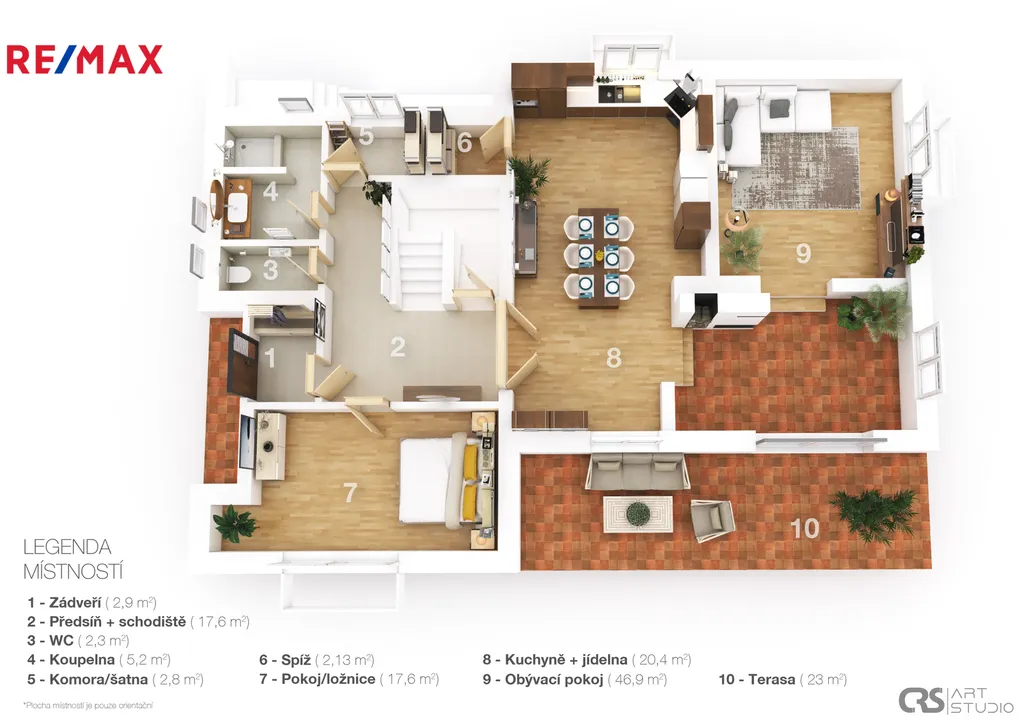 celková užitná plocha 355 m² ve třech podlažích