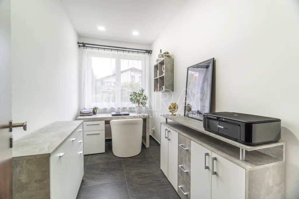 Tento dům vyniká svou velkorysou dispozicí 7+kk, která nabízí dostatek prostoru i soukromí pro každého člena rodiny. Dominantou je prostorný obývací pokoj s kuchyňským koutem, na který navazují další místnosti, a to ložnice, dětský pokoj, 2x pokoj pro hosty, dvě pracovny, šatna, technická místnost, koupelna a samostatné WC. Více naleznete v přiložené 3D prohlídce. Díky nadstandardní výšce dveří působí celý interiér ještě vzdušnějším a elegantnějším dojmem.