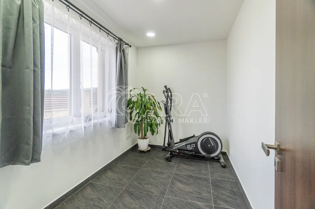 Součástí domu je garáž a před ní také dostatek parkovacího místa. Potěší vás i velmi nízké náklady na provoz (3 500 Kč měsíčně), což potvrzuje i energetická náročnost kategorie B. Je zde instalováno jedno z nejlepších tepelných čerpadel IVT země–voda.